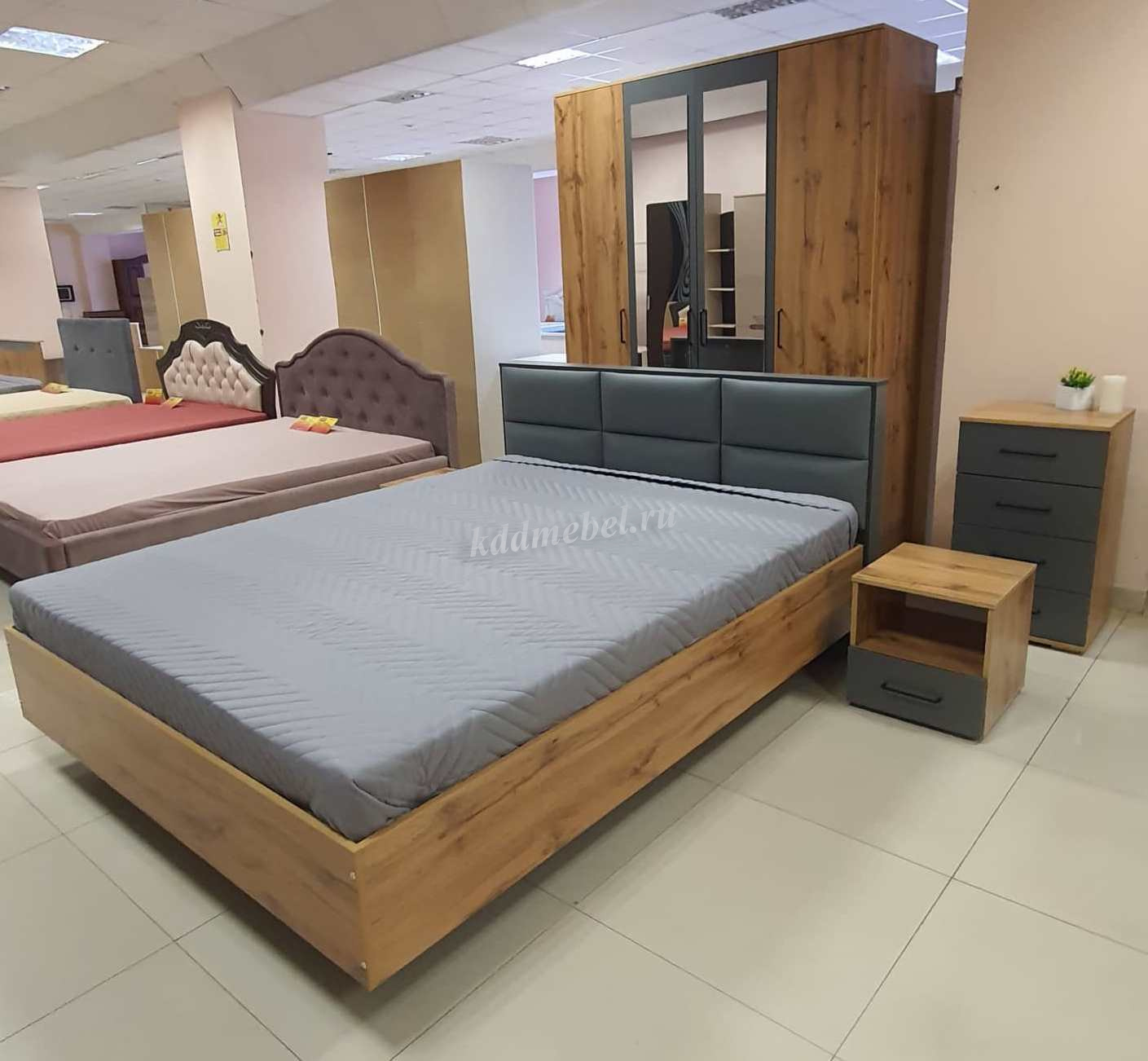 Кровать-73 1.6 Бруно с ортопедическим основанием (Дуб Вотан/Серый Графит) наличие товара: