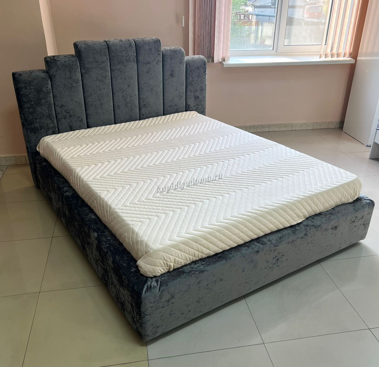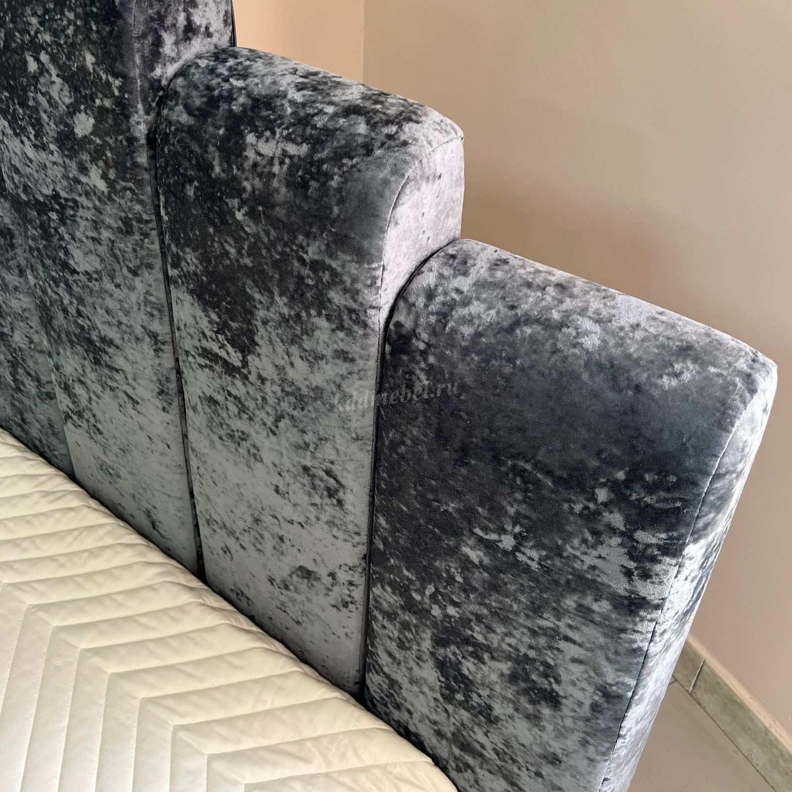 Современная кровать с рельефным изголовьем сделаем Ваш интерьер интересней. Благодаря мягкой обивке создаст атмосферу уюта. Съемные чехлы на царгах кровати с легкостью отсоединяются для чистки.