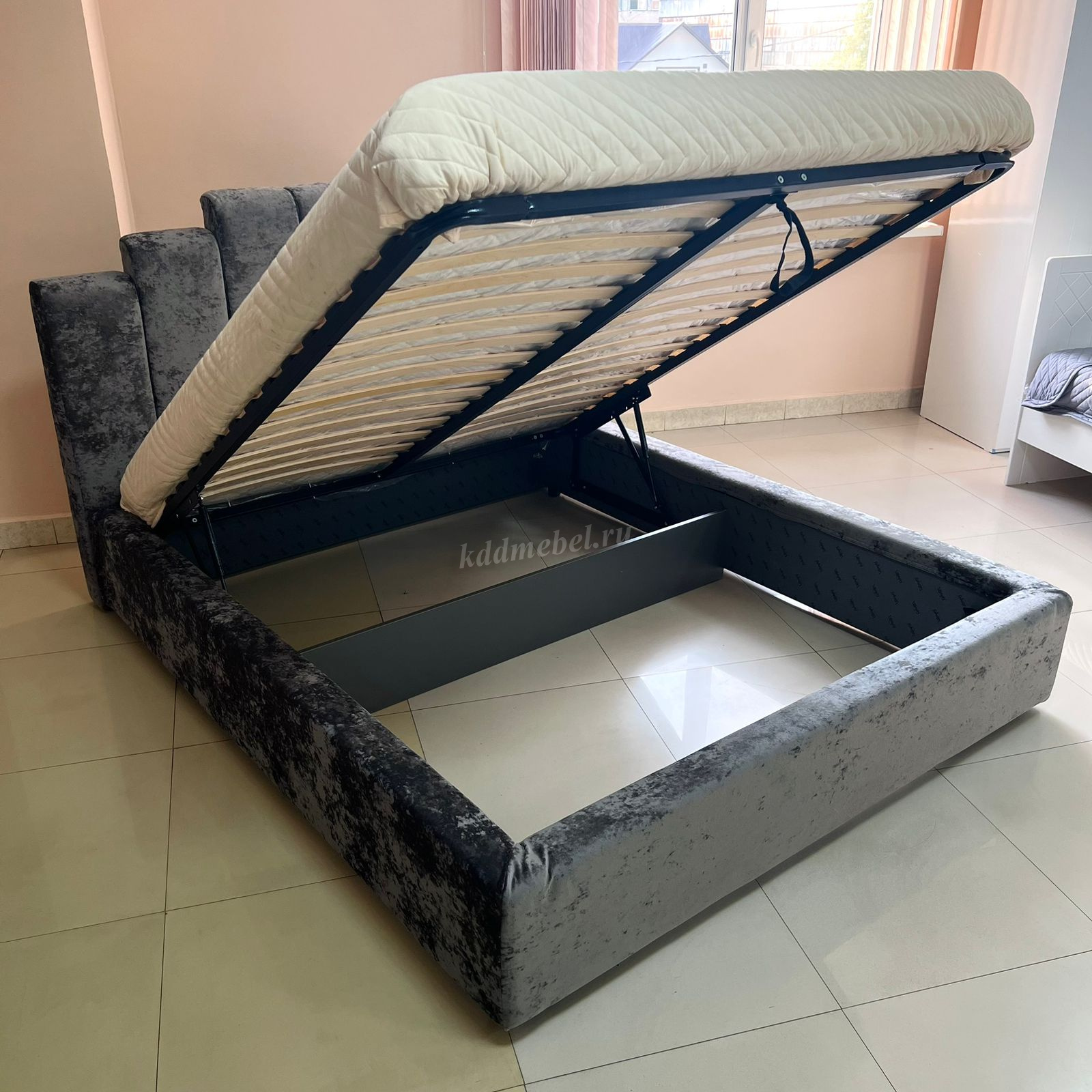 Кровать Амелия 1.6 с подъемным механизмом (Плюш Графит) наличие товара: