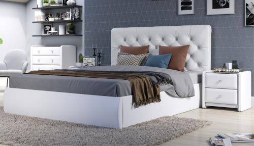 Кровать Беатриче 1.8 с подъемным механизмом (Белый/Экокожа Texas/Стразы)