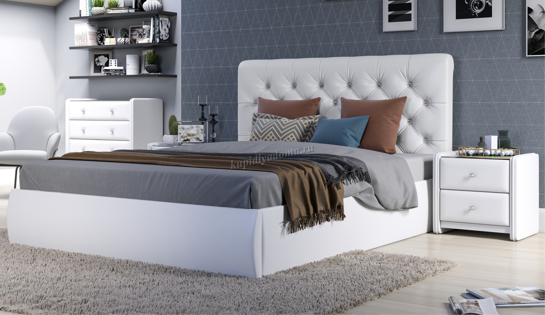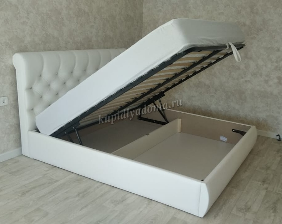 Кровать Беатриче 1.8 с подъемным механизмом (Белый/Экокожа Texas/Стразы) наличие товара: