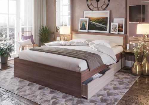 Кровать Гармония 1.6 с ящиками (Ясень шимо темный/Ясень шимо светлый)