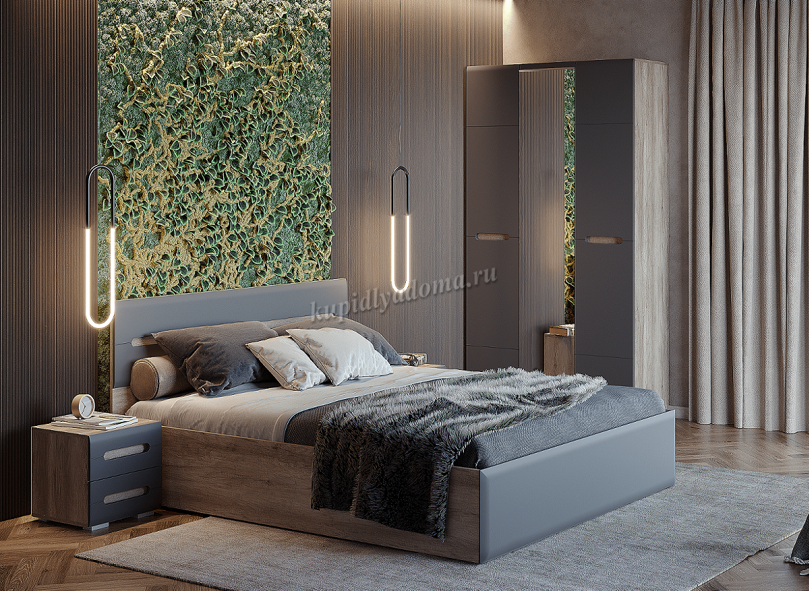 Кровать Наоми КР-11 1.6 без настила (Дуб каньон/Графит) наличие товара:
