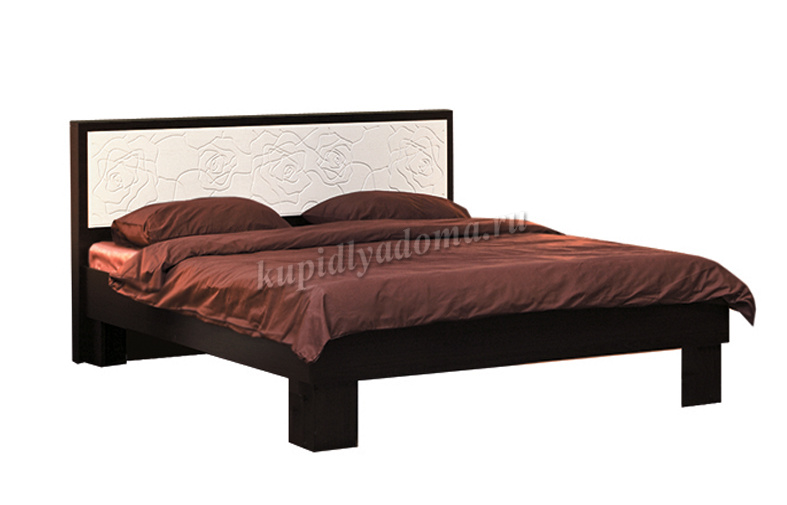 Кровать «Розалия» обладает лаконичным дизайном, оживлённым арт-элементами, изображающим распустившиеся розы. Форма мебельного изделия проста, однако привлекает внимание тёплыми оттенками. Фабрика «Олмеко» предлагает два цветовых решения: в контрастных коричнево-бежевых тонах или в спокойной молочной гамме.