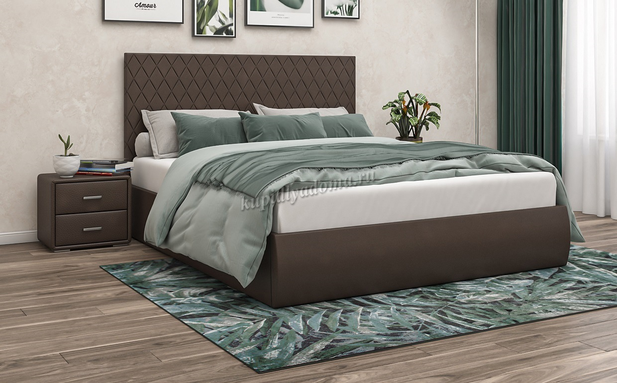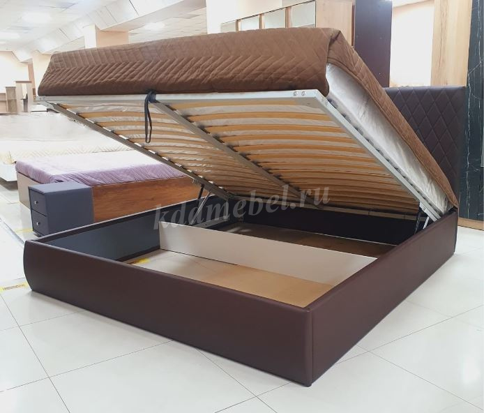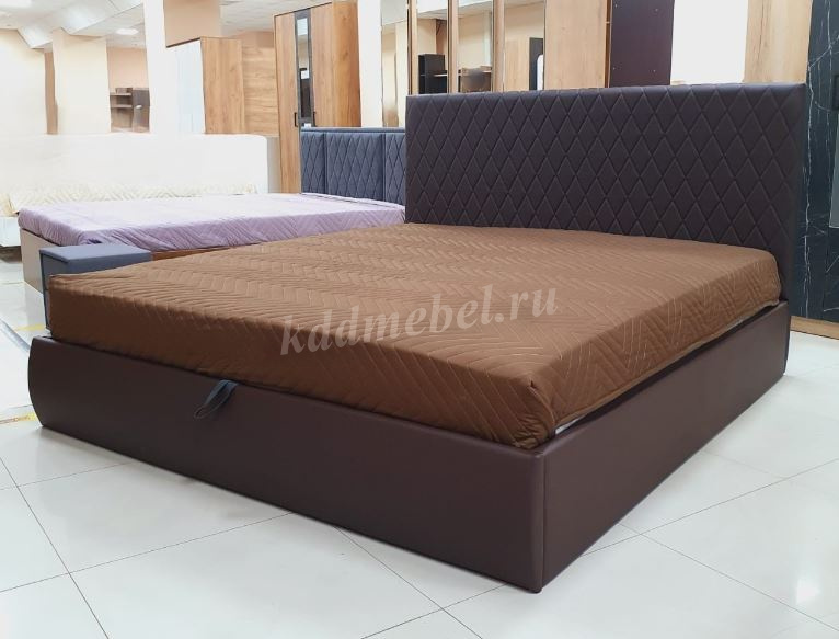 Кровать Стелла 1.6 с подъемным механизмом (Экокожа/Темно-коричневый) наличие товара: