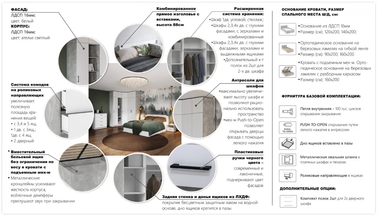 Модульная спальня Чикаго (Ателье светлый/Белый)