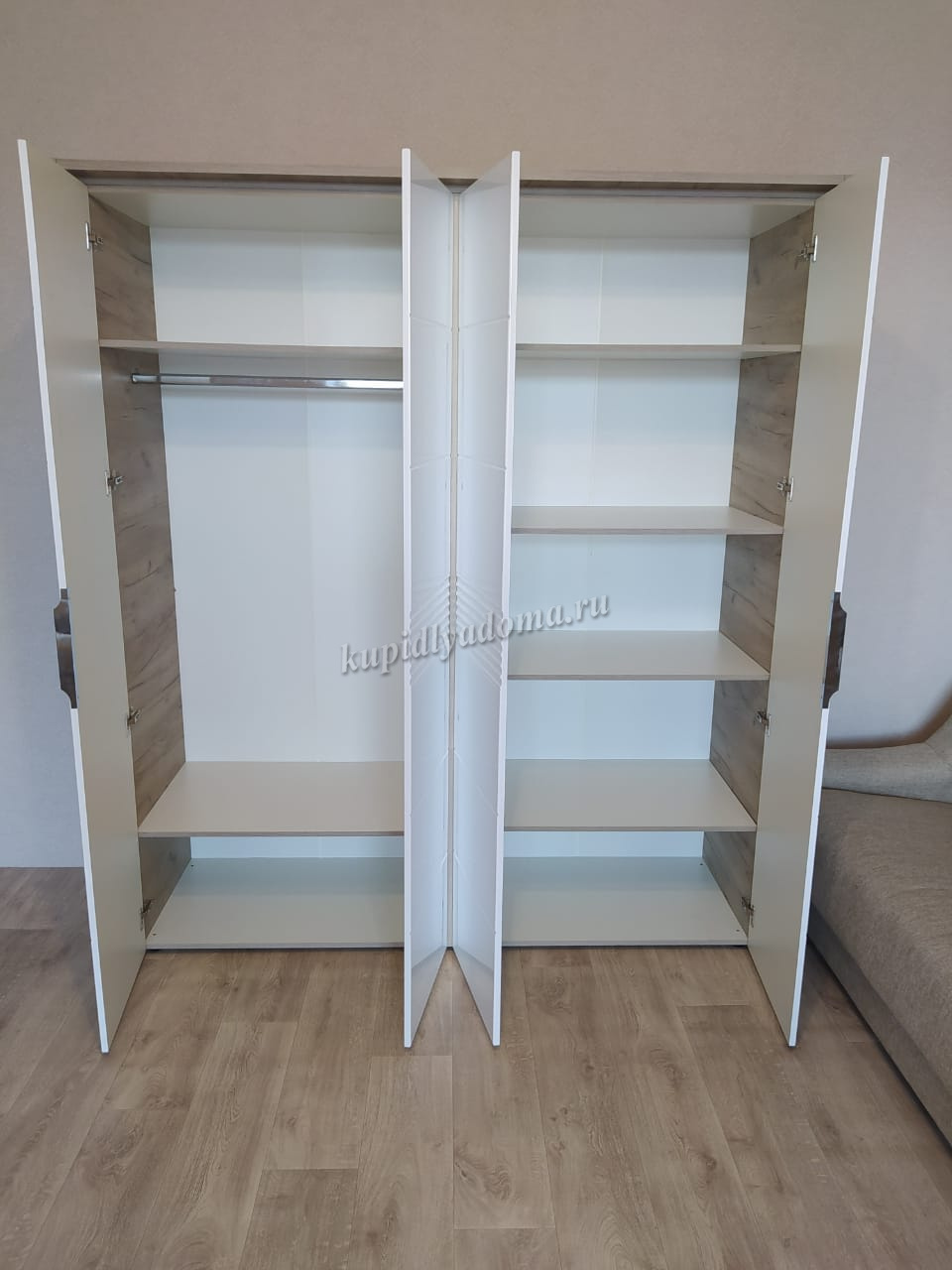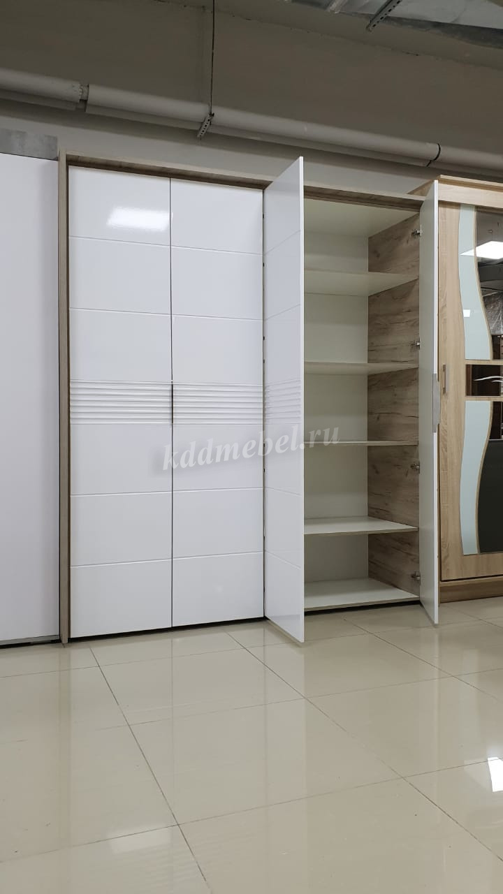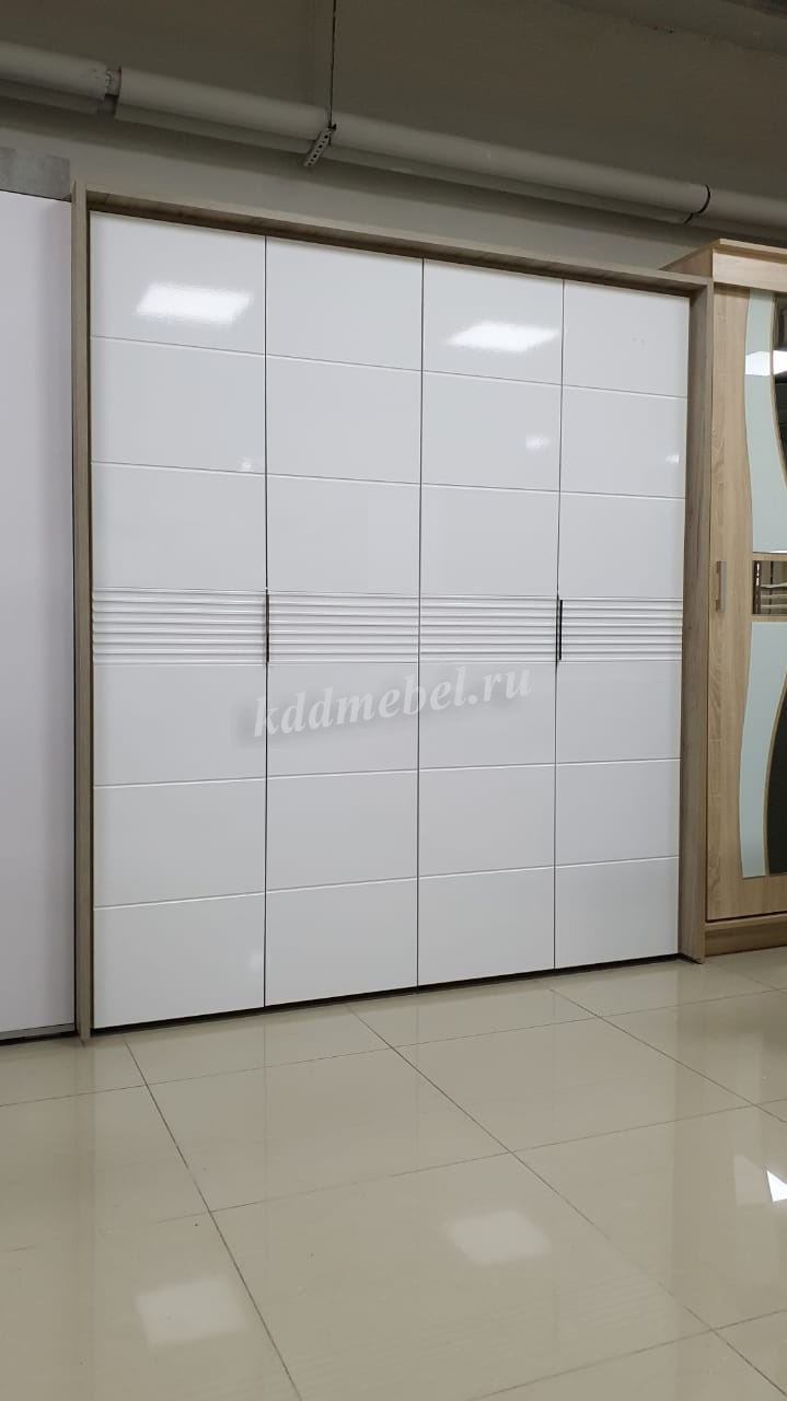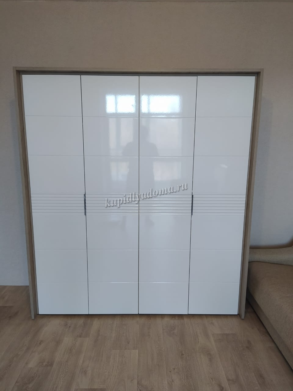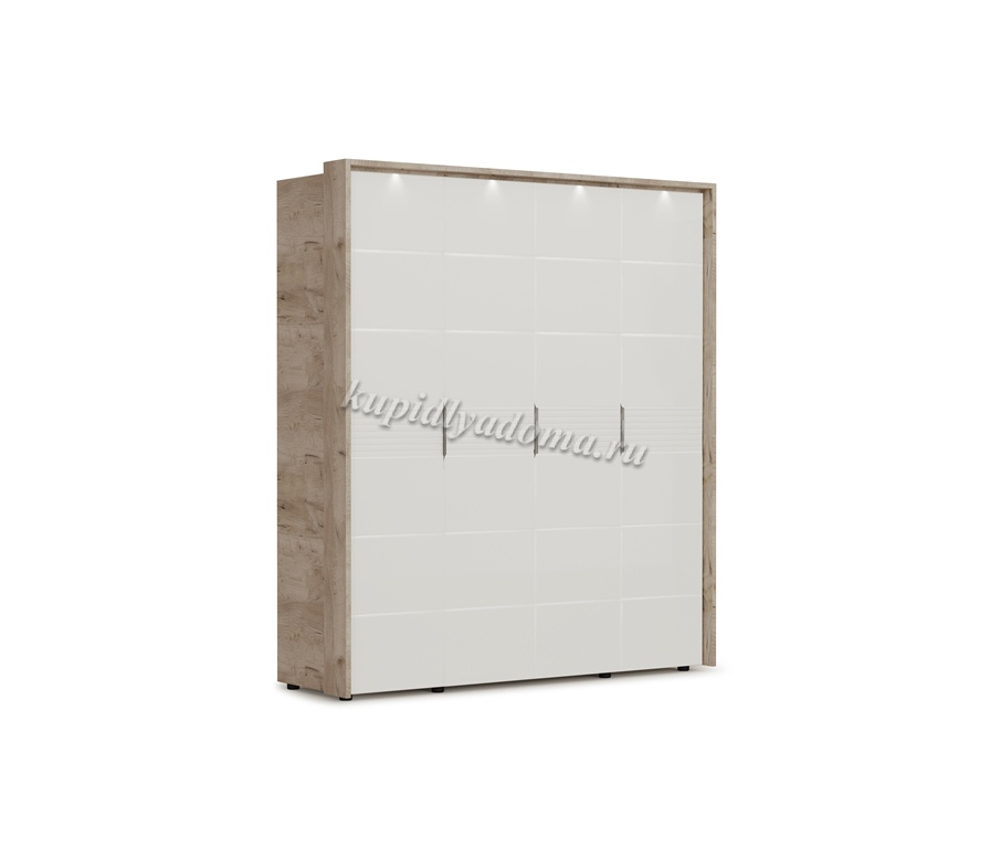 Шкаф Джулия 4-х дверный с порталом (Дуб крафт серый/Белый глянец) наличие товара: