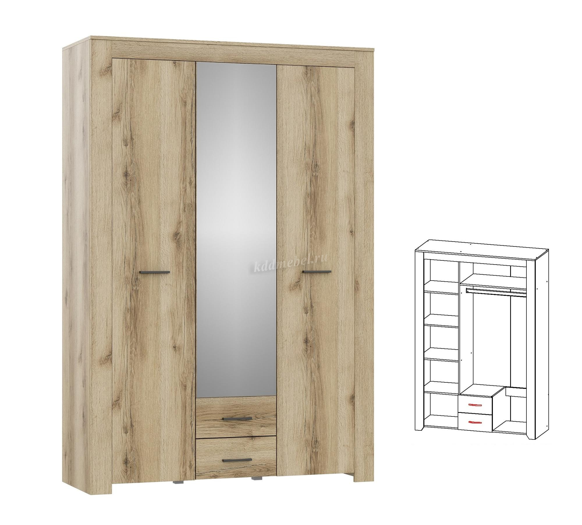 Шкаф Квадро-16 3-х створчатый (Дуб Делано светлый) наличие товара: