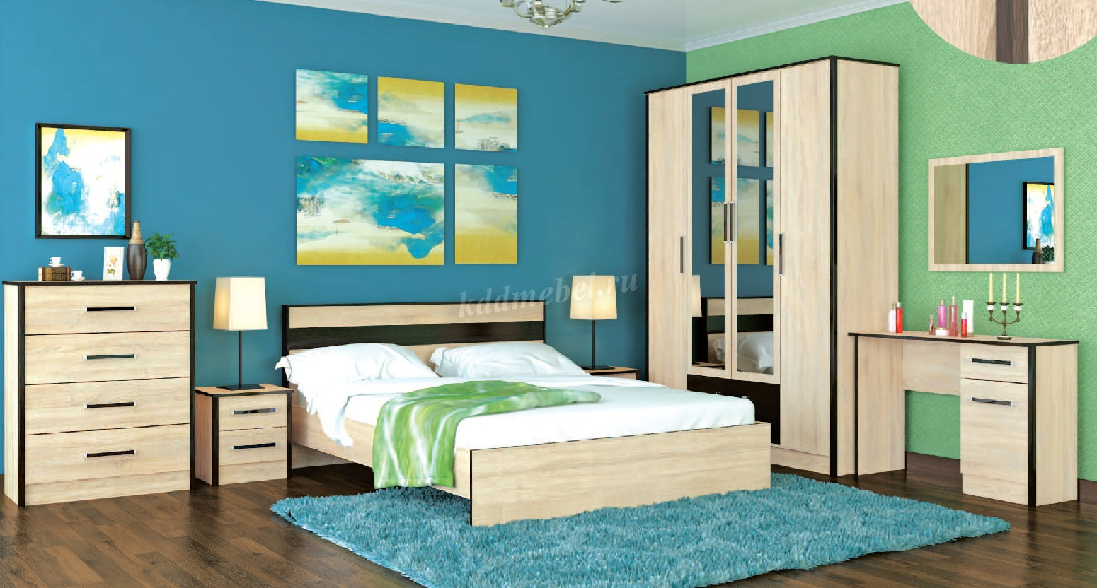 Смелое сочетание цветов и отсутствие лишних декоративных элементов - все это о спальном гарнитуре Лирика.