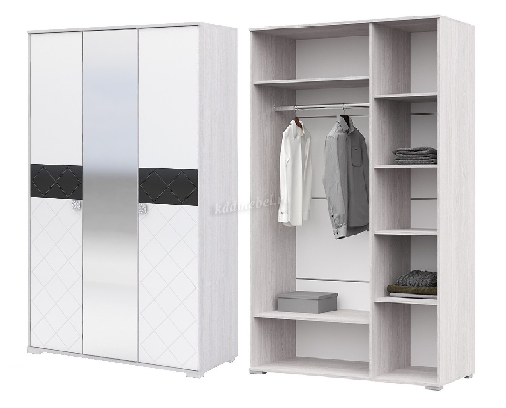Шкаф распашной Сальма 3-х створчатый ШК-023 (Анкор светлый/Белый глянец) наличие товара: