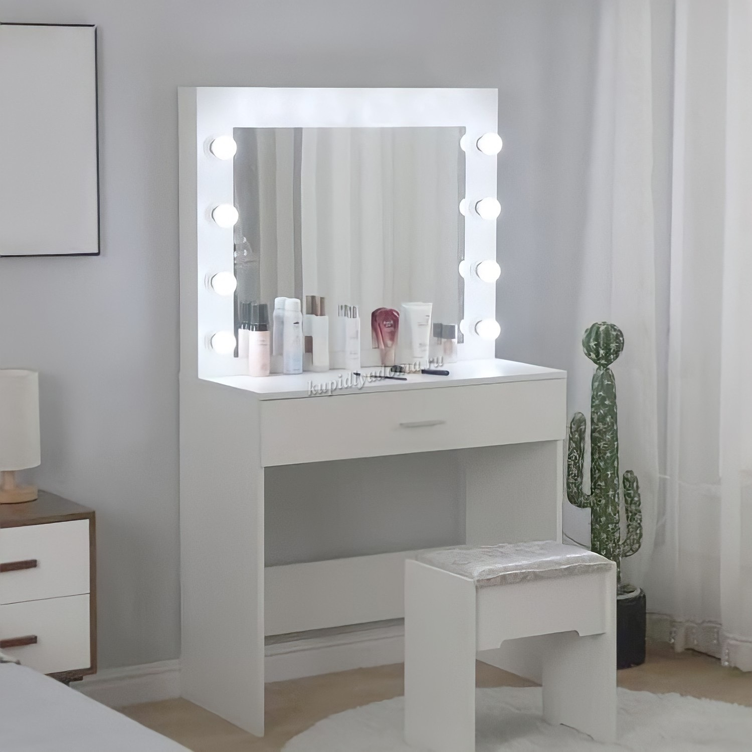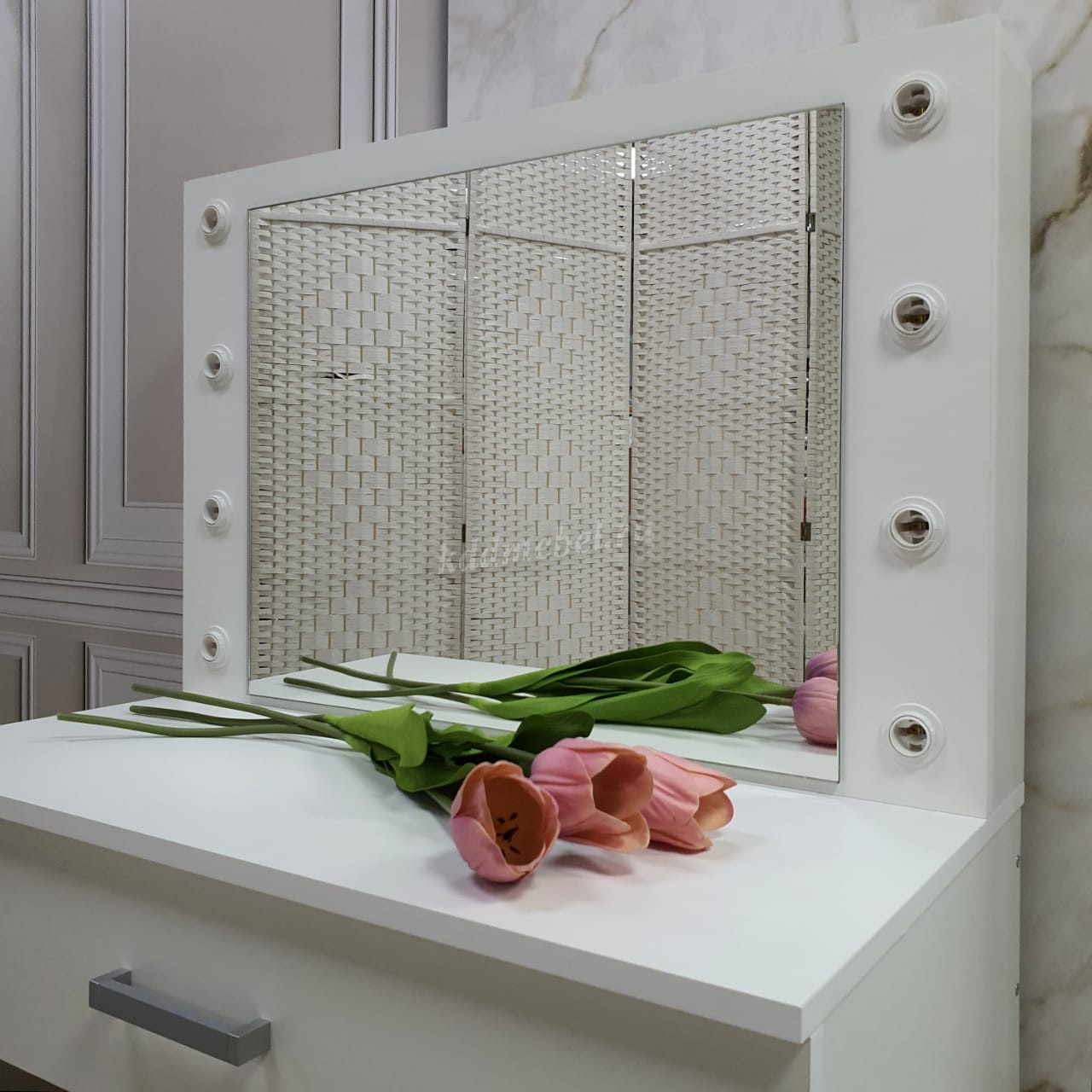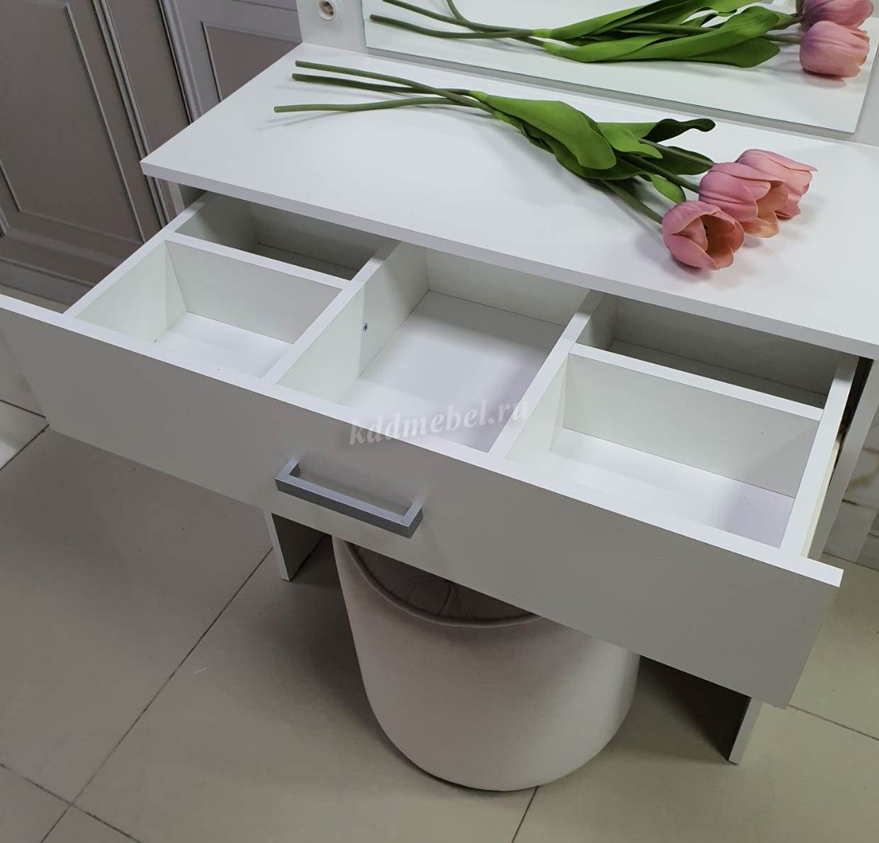 Косметический туалетный столик с зеркалом. Незаменимая вещь для каждой женщины, которая хочет иметь собственное пространство в доме или квартире. Вместительный ящик на роликовых направляющих вместит все аксессуары и украшения, необходимые для макияжа.