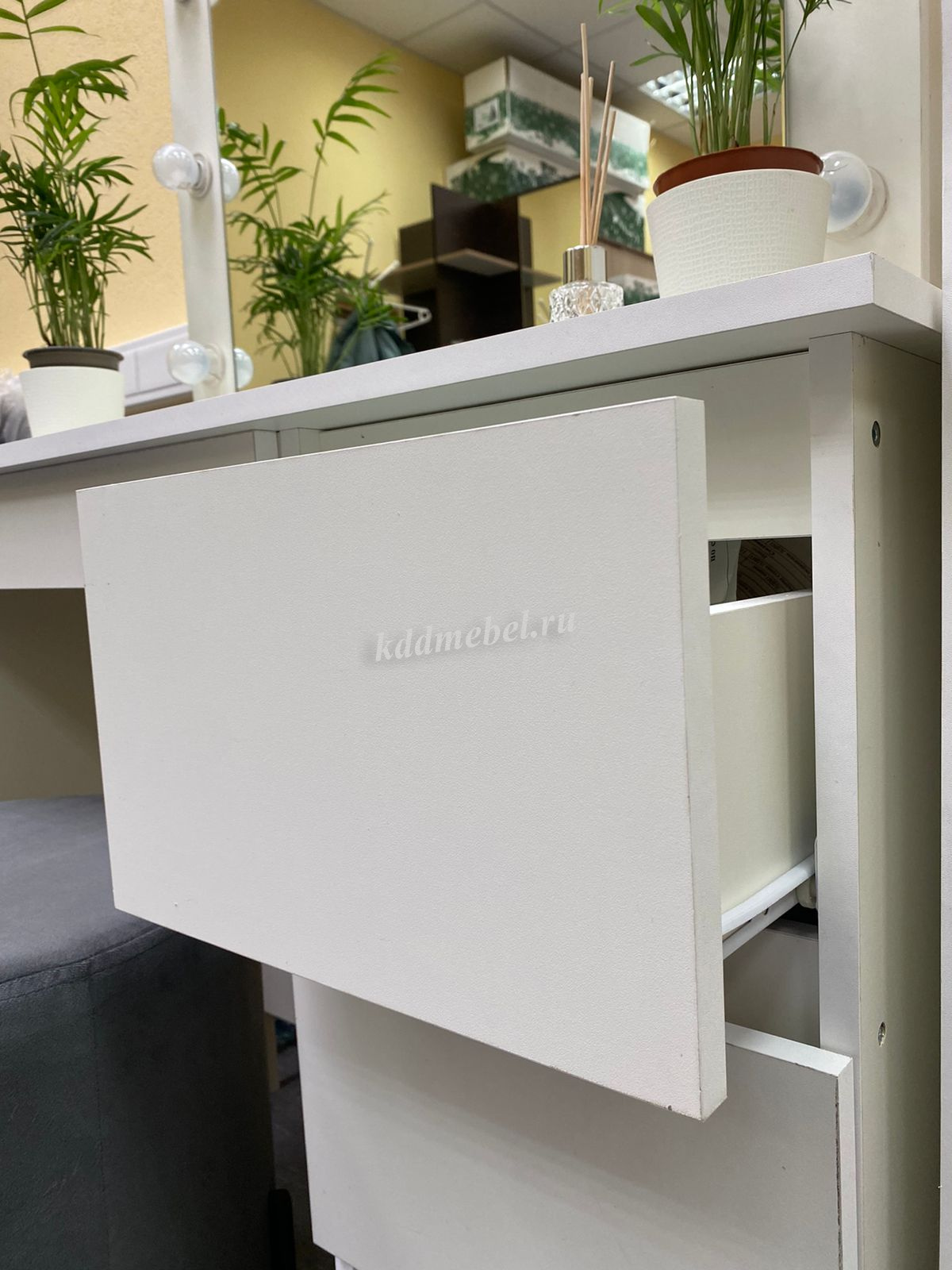 Незаменимая вещь для каждой женщины, которая хочет иметь собственное пространство в доме или квартире. Три вместительных ящика на роликовых направляющих вместят все аксессуары и украшения, необходимые для макияжа.