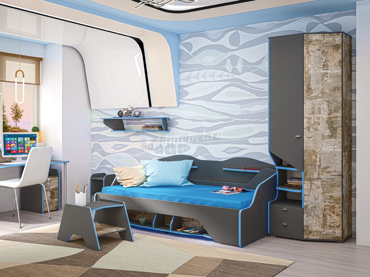 Для тех, кто ценит индивидуальность и не боится быть уникальным - предлагается молодёжная модульная система Индиго. Здесь нестандартно всё: геометрические формы, стиль, декоры. Такая мебель может стать акцентом в любом интерьере.