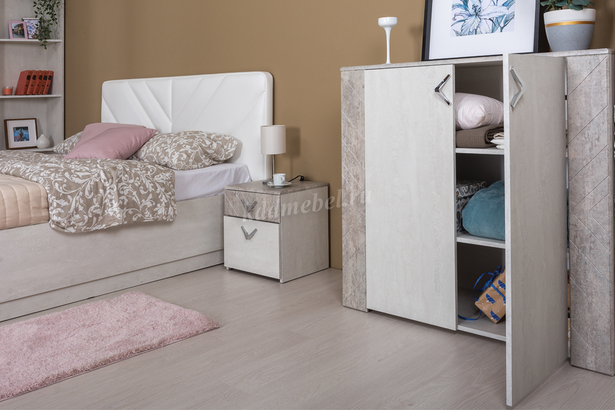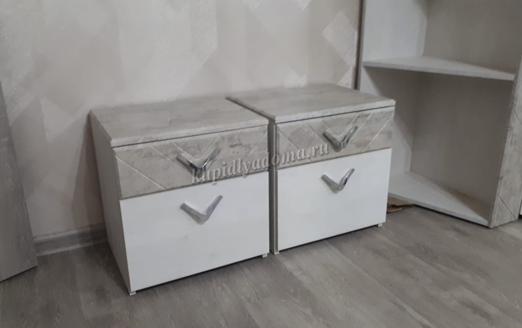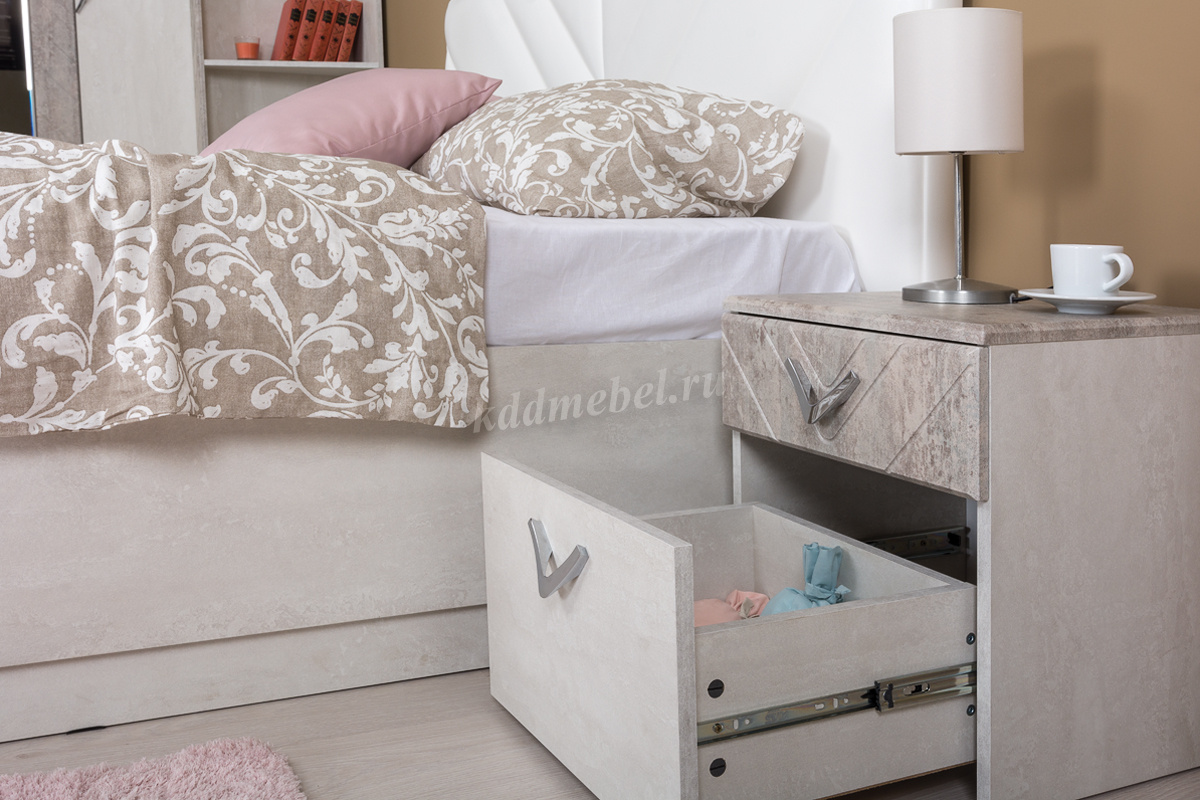 Тумба прикроватная Амели 13.78 (Шёлковый камень/Бетон Чикаго бежевый) наличие товара: