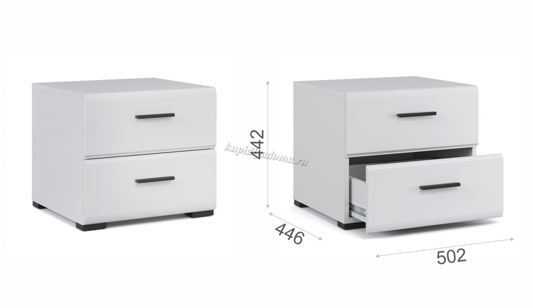 Прикроватная тумба органично впишется в интерьер современной спальни, сделает хранение вещей удобным и аккуратным. Глянцевые белые фасады High Gloss из МДФ с горизонтальной фрезеровкой делают пространство более объемным и воздушным. На поверхности тумбы можно расположить ночник, книгу, часы. Два вместительных выдвижных ящика позволят хранить под рукой все самое необходимое – косметику, зарядное устройство, наушники. Тумба выполнена из экологически безопасных и надежных материалов