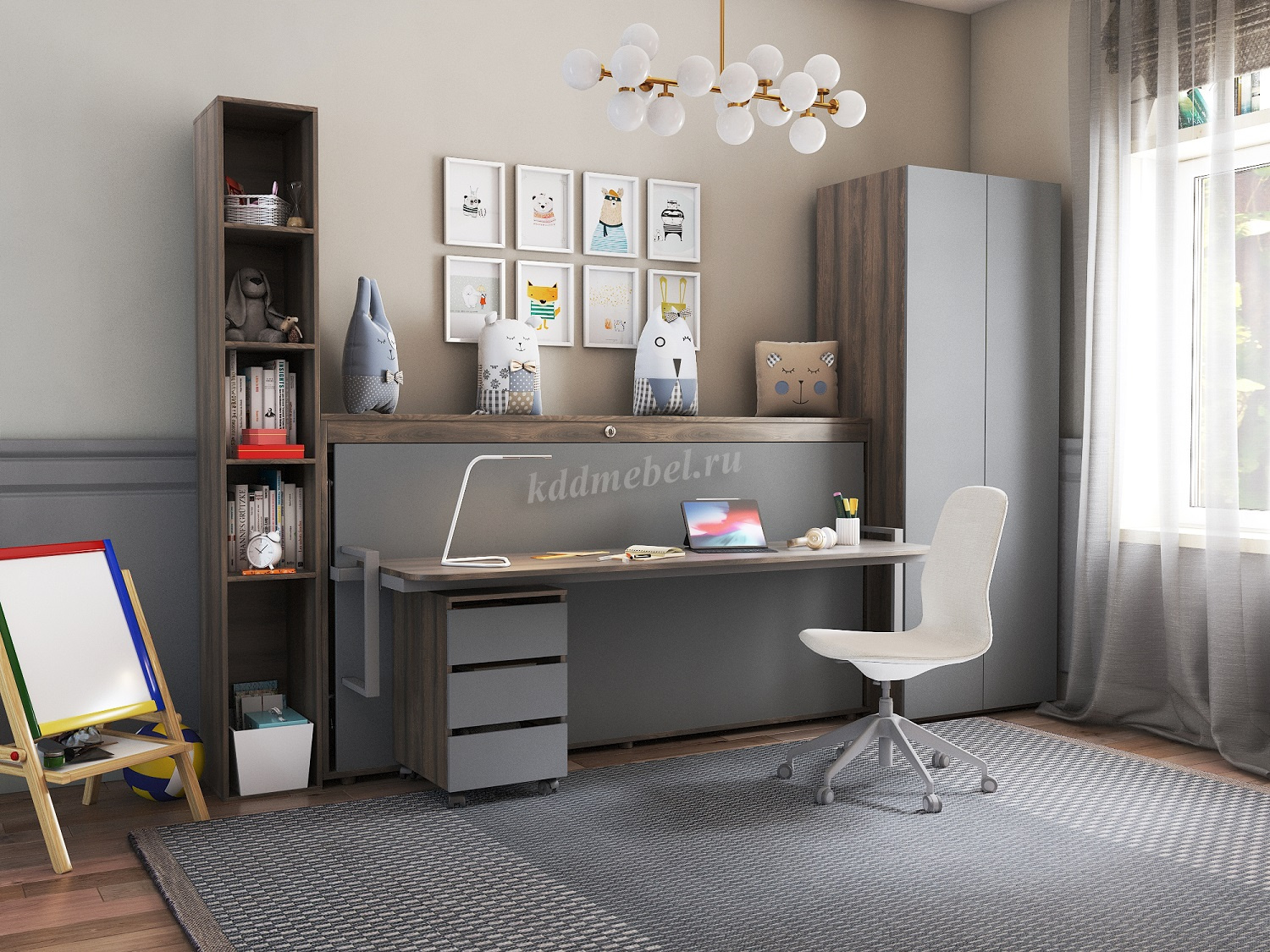 Описание Раскладушка-кабинет 900 кровать односпальная (Ясень анкор темный/Темно-серый)