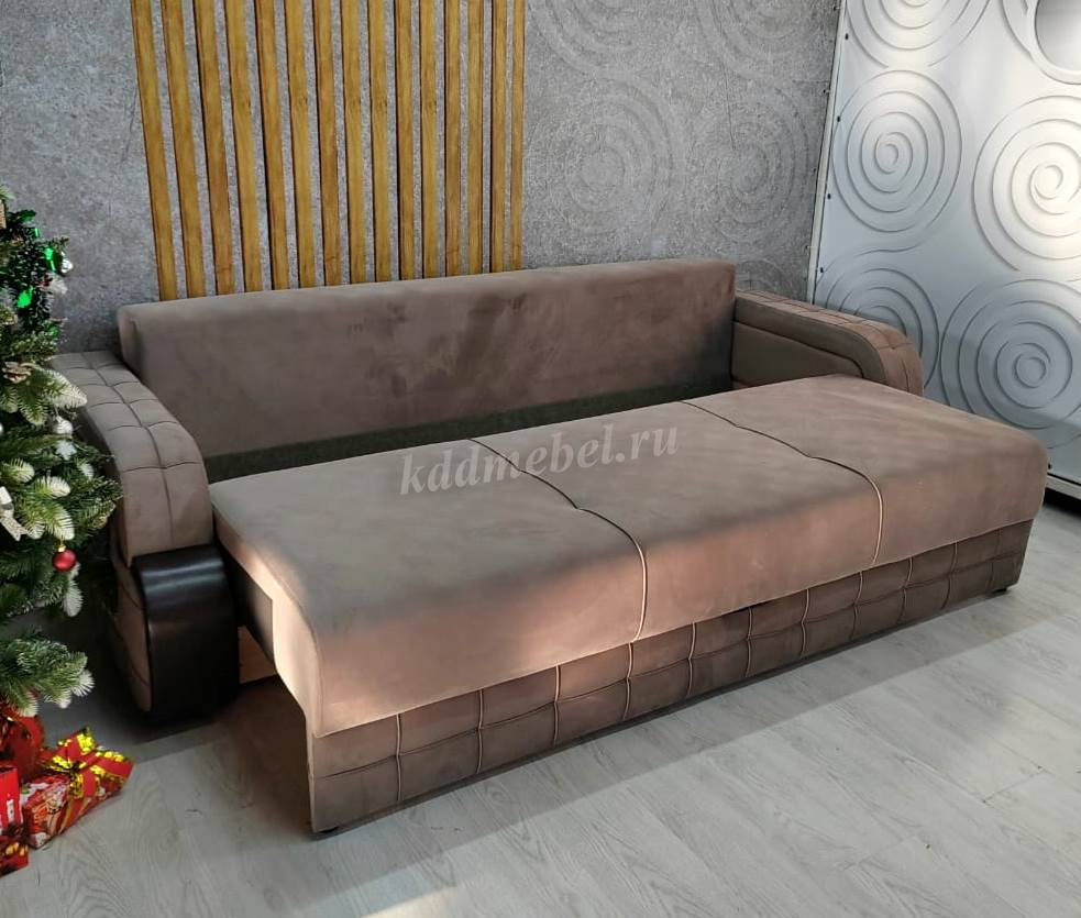Трехместный диван-кровать повышенной комфортности. Может использоваться, как центральный объект интерьера. Станет украшением современного дизайна, подчеркнет стиль Вашего дома. Материал обивки: Ткань, искусственная кожа. Каркас: Брус хвойных пород, березовая фанера, ДСП, ДВП. Наполнитель: независимый пружинный блок, геовойлок, высокоэластичный ППУ, синтепон. Наполнитель подушек: Холофайбер. Бельевой ящик: ЛДСП, ЛДВП, размер: 1870х630х150 (мм).