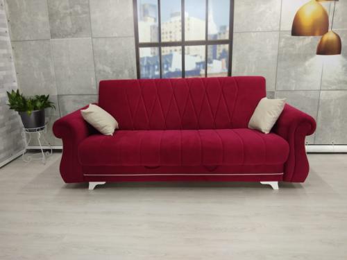 Трехместный диван-кровать повышенной комфортности. Может использоваться, как центральный объект интерьера. Станет украшением современного дизайна, подчеркнет стиль Вашего дома. Вы всегда может выбрать: Обивка из ткани (сделает эту модель простой и универсальной, подходящей для любого интерьера). Подушки и кант в компаньоне. Сиденье и спинка выполнены на основе пружинных блоков «боннель» и ортопедического основания из березовых лат. Вместительная емкость для хранения постельных принадлежностей с ламинированным основанием. Бельевой ящик: ЛДСП, ЛДВП, размер: 1760х840х160 (мм). Задняя спинка в обивочном материале.