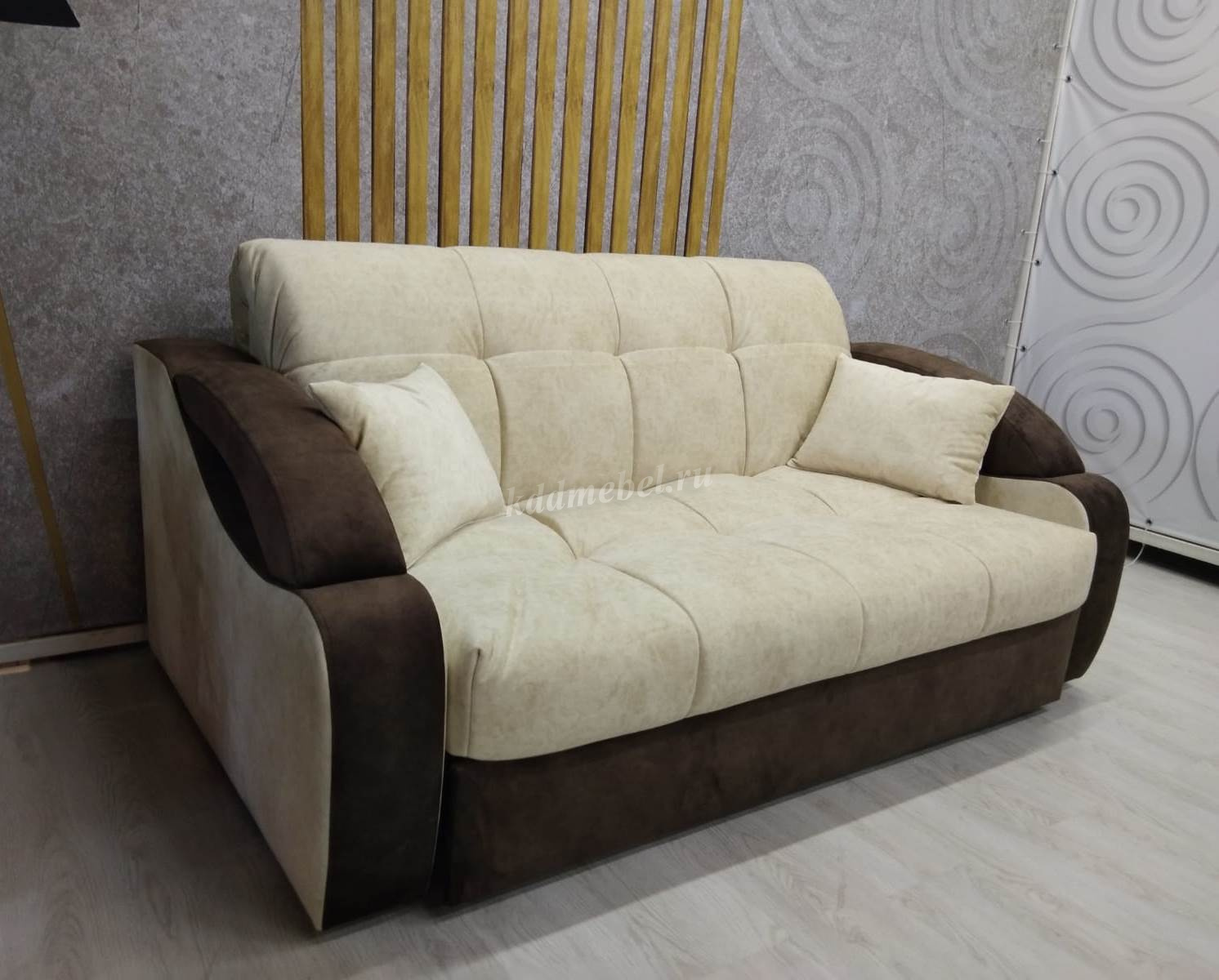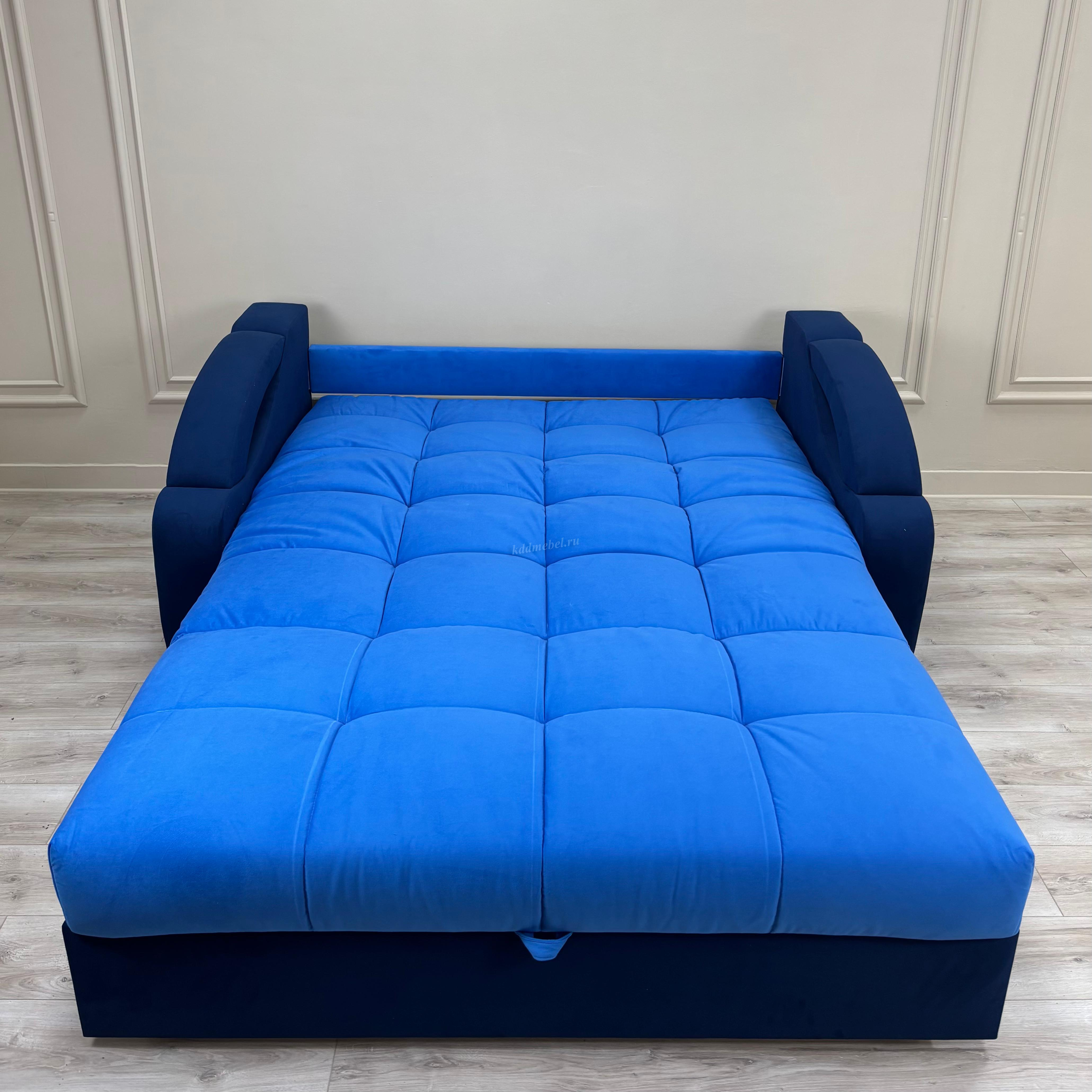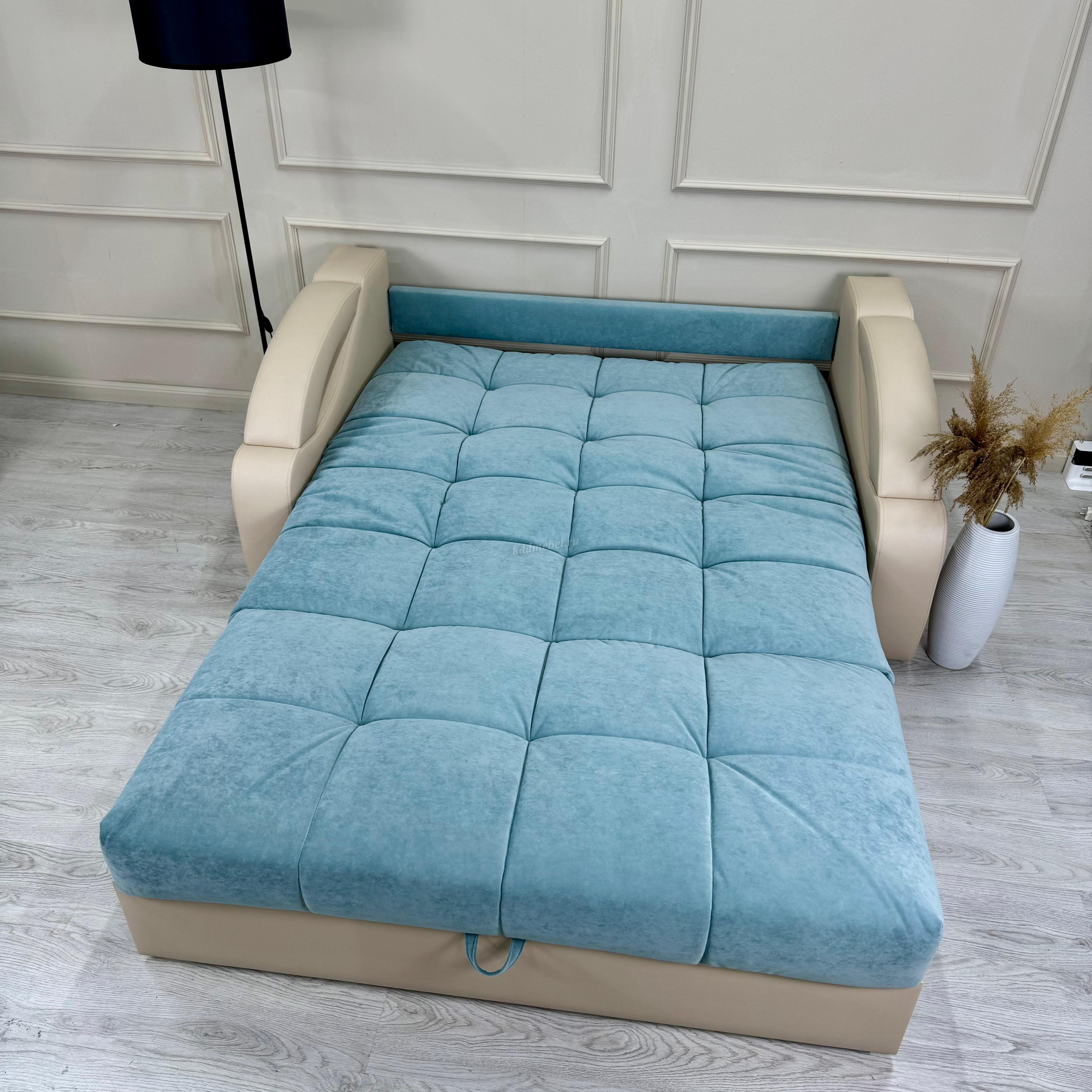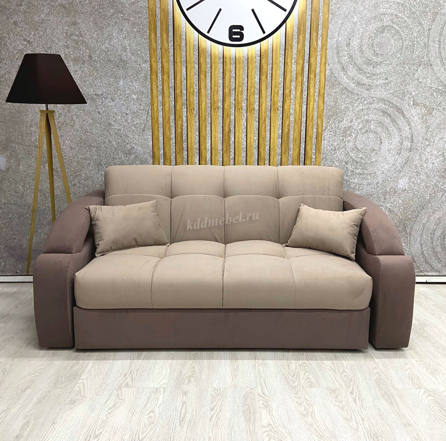 Стильный современный диван. Мягкие дугообразные подлокотники. Ровное спальное место. Возможность использования в качестве центрального объекта интерьера. В основании спального места металлический каркас с поддерживающими деревянными латами и механизмом трансформации «аккордеон». Матрас на эластичном ППУ. Съемный чехол спального места. Спальное место формируется следующим образом: цокольная часть сиденья выдвигается вперед до упора, спинка, состоящая из сложенного листового пенополиуретана, раскладывается. Для трансформирования не требуется расстояние между стеной и диваном. На фото показана модель дивана, расцветку возможно сделать под заказ или выбрать по наличию на складе. Цена может меняться в большую или меньшую сторону, в зависимости от ткани.