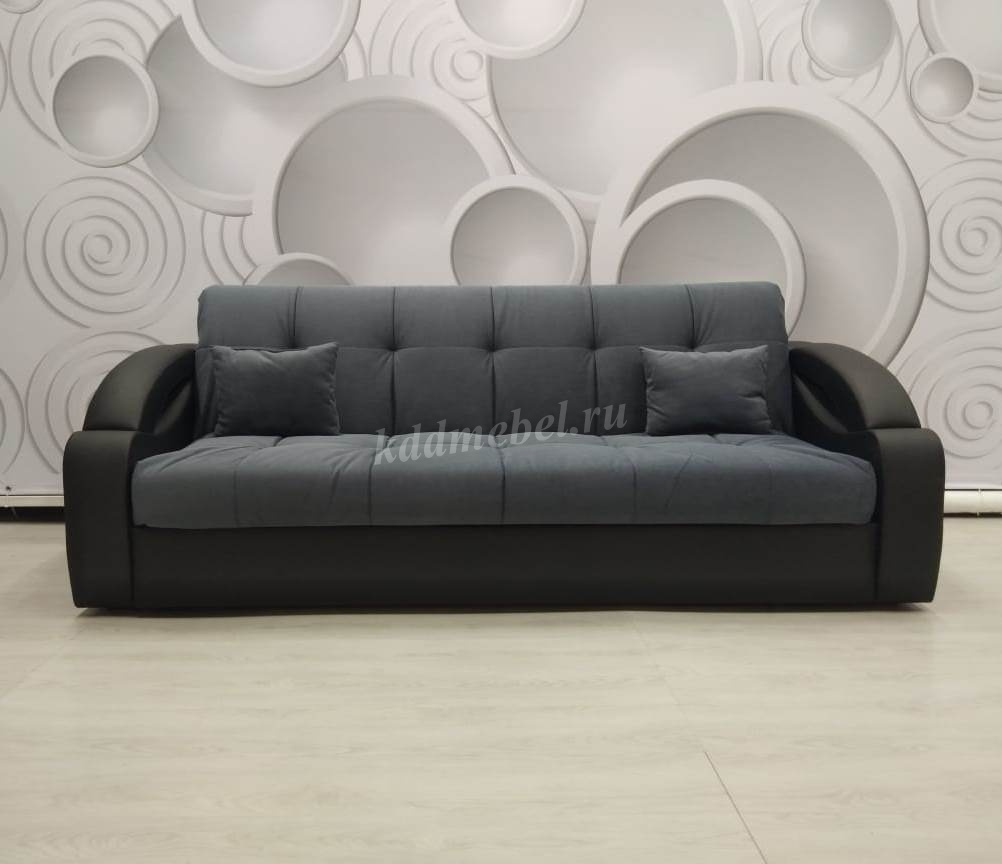 Стильный современный диван. Мягкие дугообразные подлокотники. Ровное спальное место. Возможность использования в качестве центрального объекта интерьера. В основании спального места металлический каркас с поддерживающими деревянными латами и механизмом трансформации «аккордеон». Матрас на эластичном ППУ. Съемный чехол спального места. Спальное место формируется следующим образом: цокольная часть сиденья выдвигается вперед до упора, спинка, состоящая из сложенного листового пенополиуретана, раскладывается. Для трансформирования не требуется расстояние между стеной и диваном. На фото показана модель дивана, расцветку возможно сделать под заказ или выбрать по наличию на складе. Цена может меняться в большую или меньшую сторону, в зависимости от ткани.