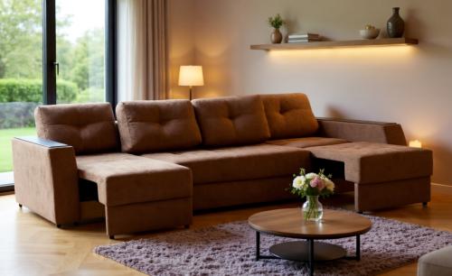 Трехместный диван-кровать повышенной комфортности. Может использоваться, как центральный объект интерьера. Станет украшением современного дизайна, подчеркнет стиль Вашего дома. Наполнитель: независимый пружинный блок, геовойлок, высокоэластичный ППУ, синтепон. Материал обивки: Ткань, искусственная кожа. Вместительная емкость для хранения постельных принадлежностей с ламинированным основанием. Декоративное оформление вставками из облицованного МДФ.