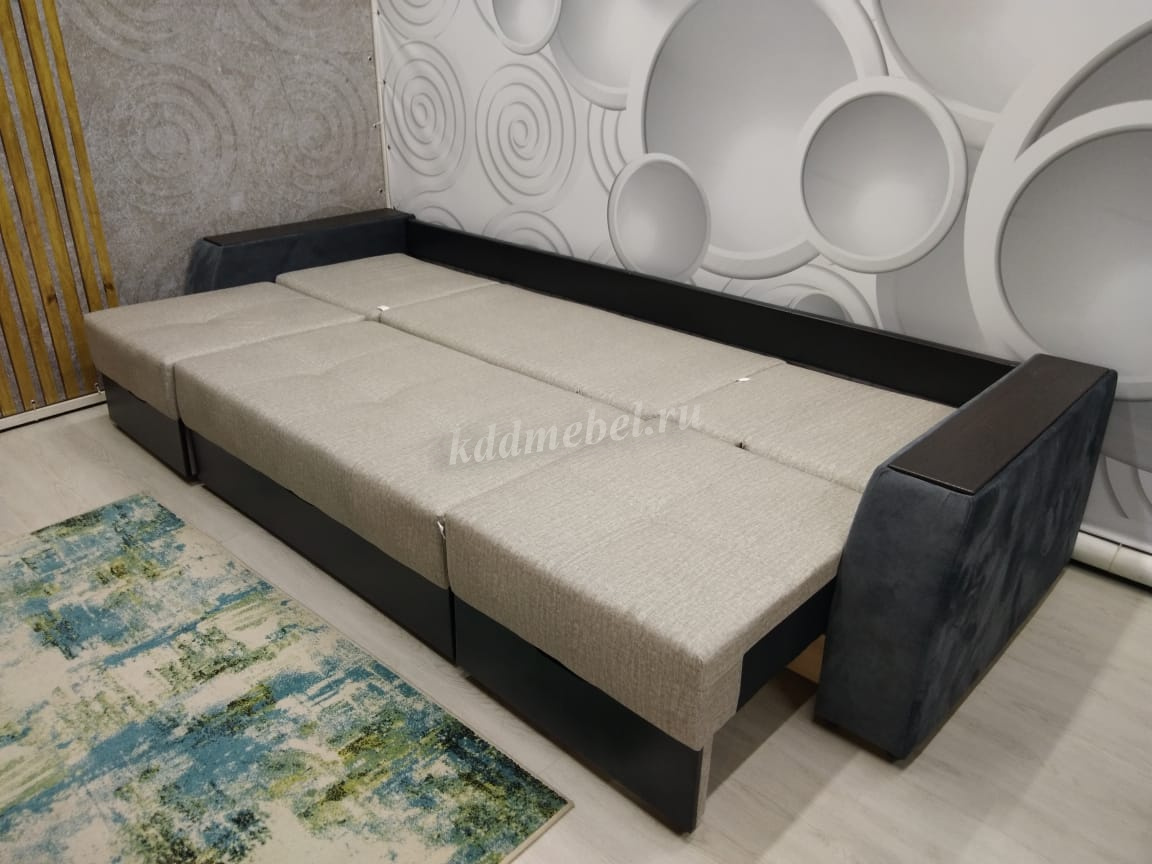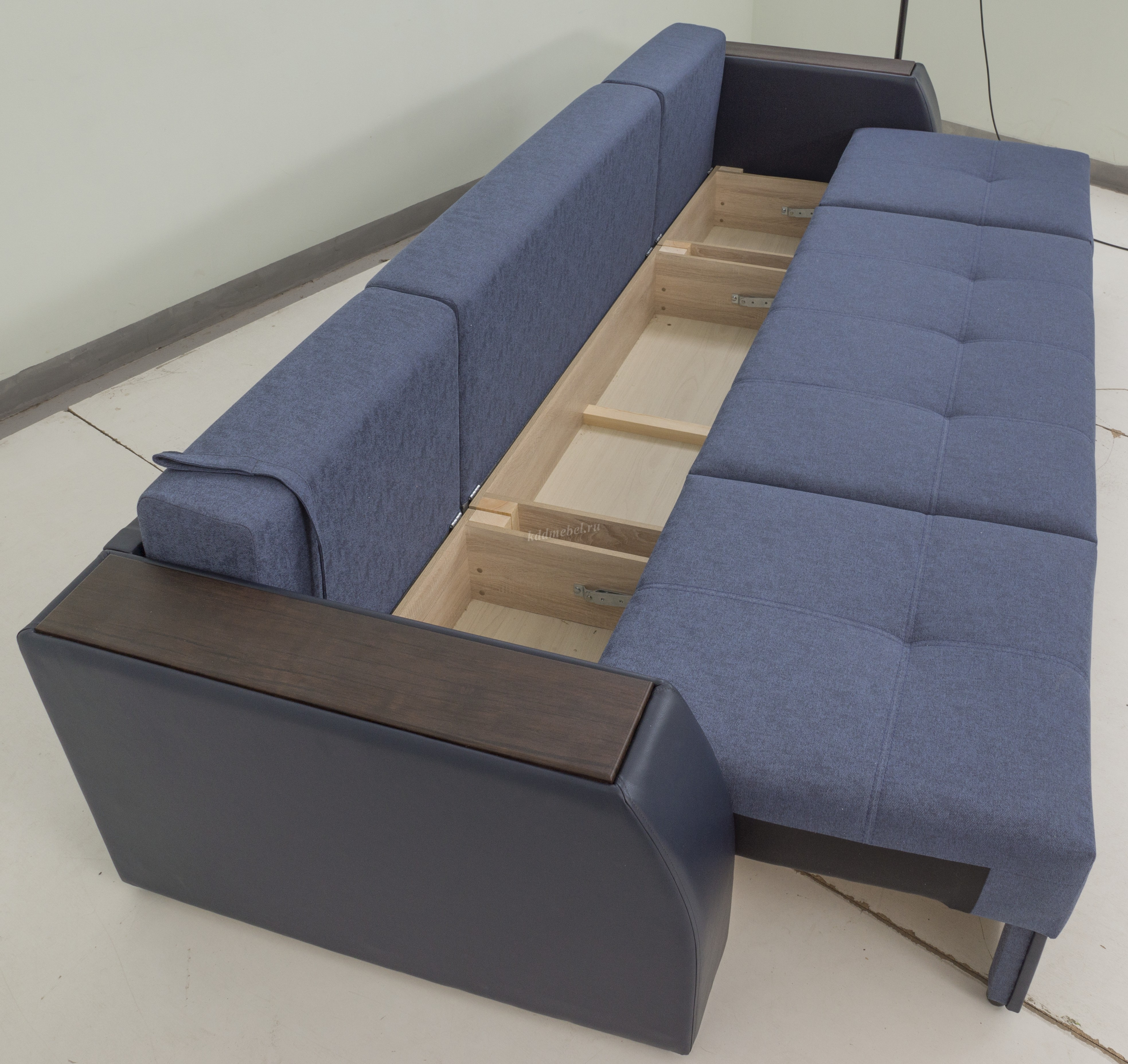 Трехместный диван-кровать повышенной комфортности. Может использоваться, как центральный объект интерьера. Станет украшением современного дизайна, подчеркнет стиль Вашего дома. Наполнитель: независимый пружинный блок, геовойлок, высокоэластичный ППУ, синтепон. Материал обивки: Ткань, искусственная кожа. Вместительная емкость для хранения постельных принадлежностей с ламинированным основанием. Декоративное оформление вставками из облицованного МДФ.