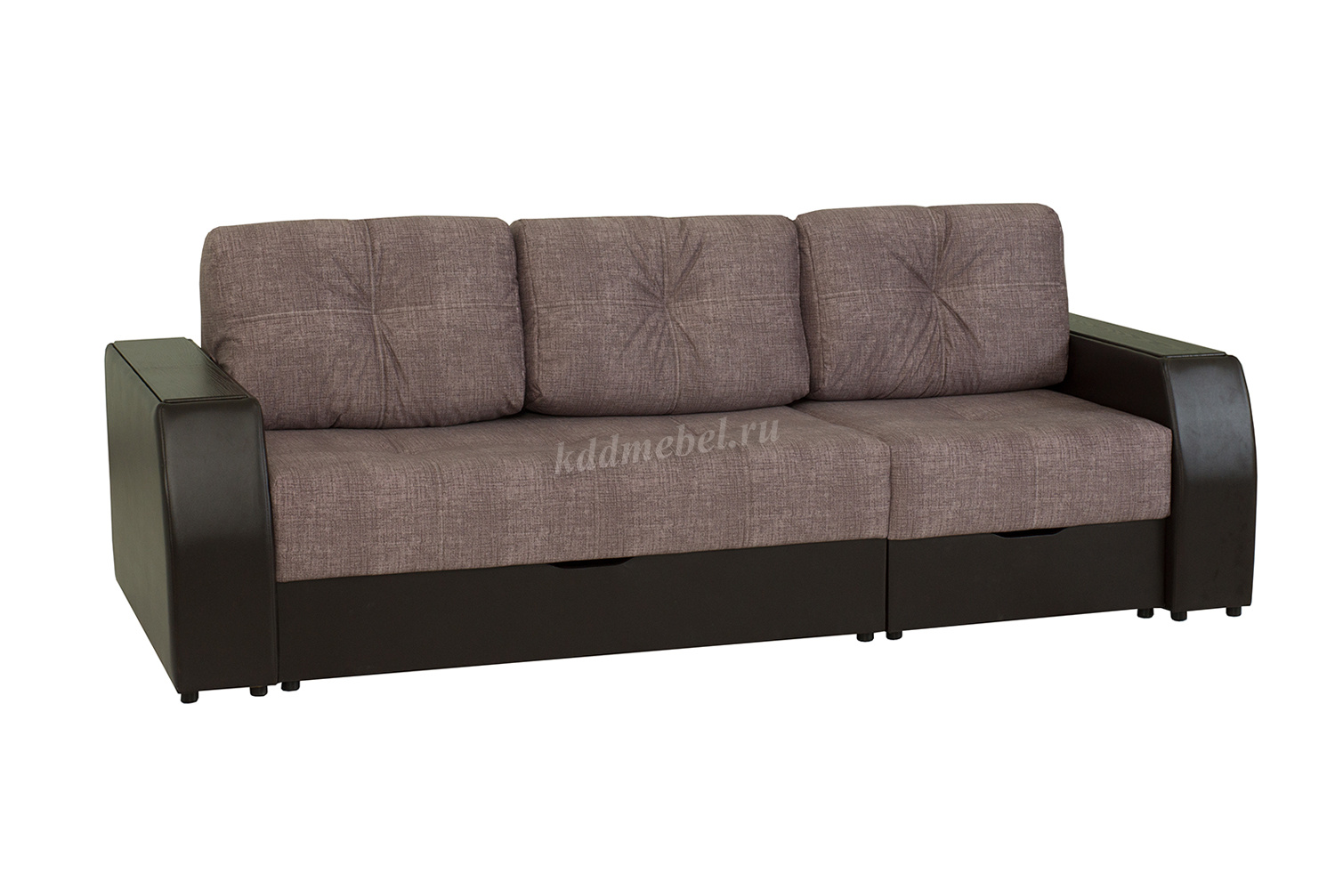 Трехместный диван-кровать повышенной комфортности. Может использоваться, как центральный объект интерьера. Станет украшением современного дизайна, подчеркнет стиль Вашего дома. Наполнитель: независимый пружинный блок, геовойлок, высокоэластичный ППУ, синтепон. Материал обивки: Ткань, искусственная кожа. Вместительная емкость для хранения постельных принадлежностей с ламинированным основанием. Декоративное оформление вставками из облицованного МДФ.
