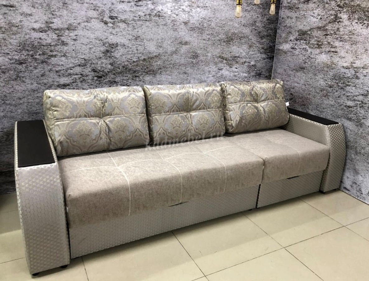 Трехместный диван-кровать повышенной комфортности. Может использоваться, как центральный объект интерьера. Станет украшением современного дизайна, подчеркнет стиль Вашего дома. Наполнитель: независимый пружинный блок, геовойлок, высокоэластичный ППУ, синтепон. Материал обивки: Ткань, искусственная кожа. Вместительная емкость для хранения постельных принадлежностей с ламинированным основанием. Декоративное оформление вставками из облицованного МДФ.