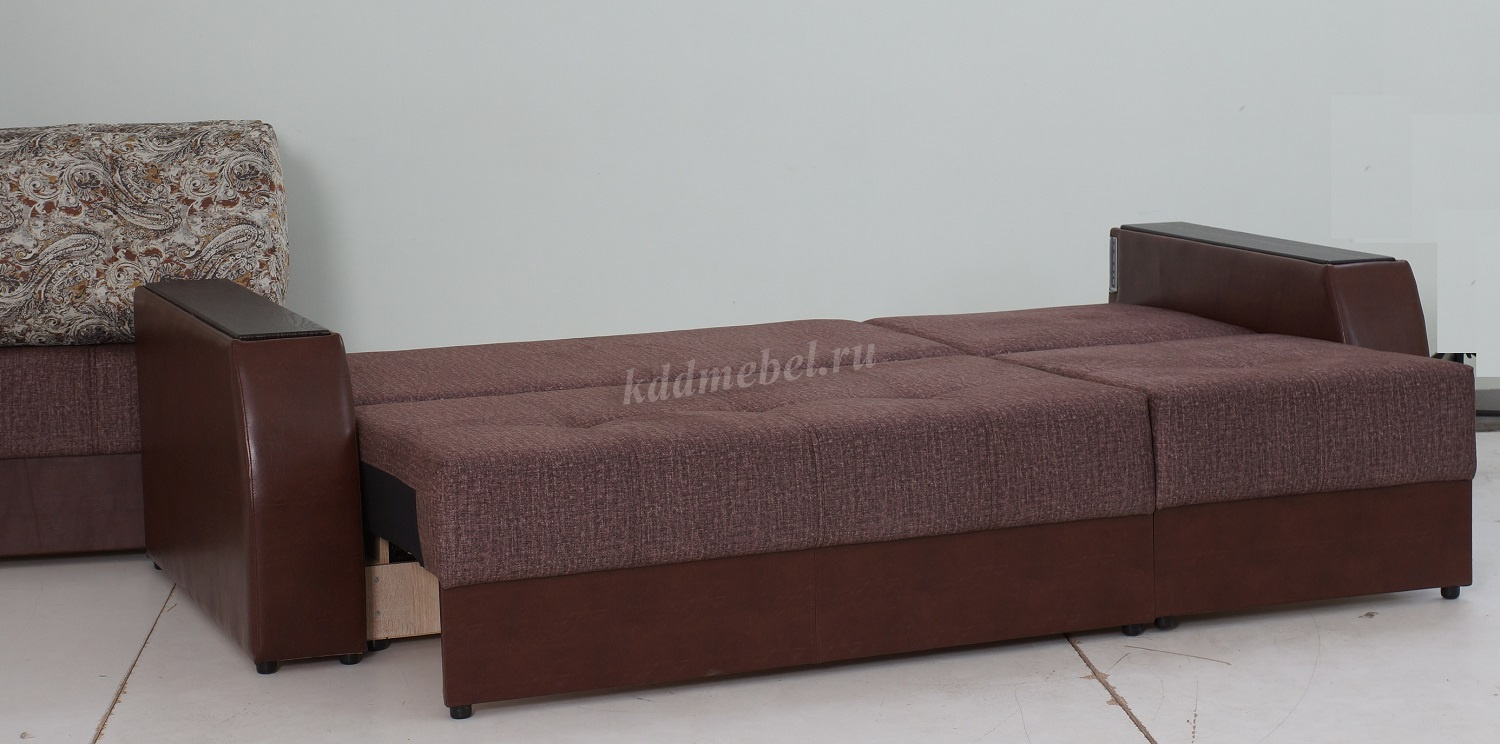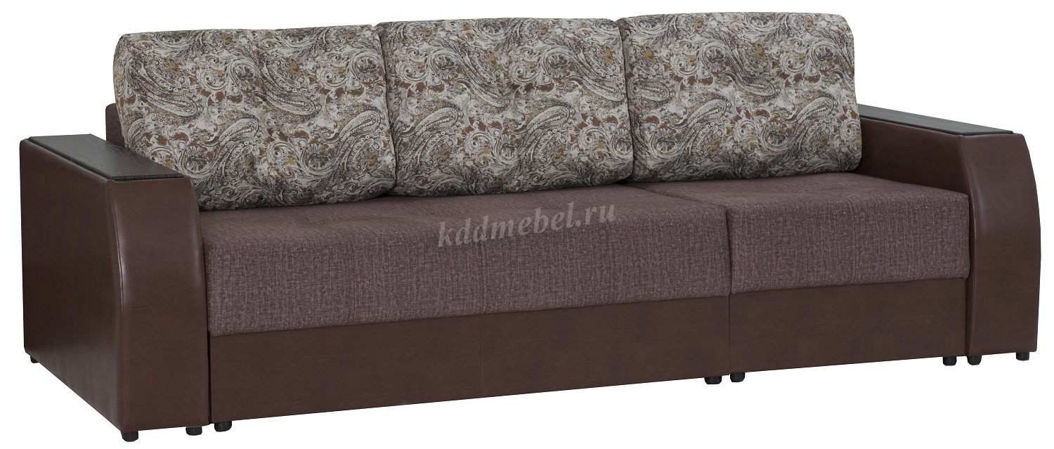 Трехместный диван-кровать повышенной комфортности. Может использоваться, как центральный объект интерьера. Станет украшением современного дизайна, подчеркнет стиль Вашего дома. Наполнитель: независимый пружинный блок, геовойлок, высокоэластичный ППУ, синтепон. Материал обивки: Ткань, искусственная кожа. Вместительная емкость для хранения постельных принадлежностей с ламинированным основанием. Декоративное оформление вставками из облицованного МДФ.