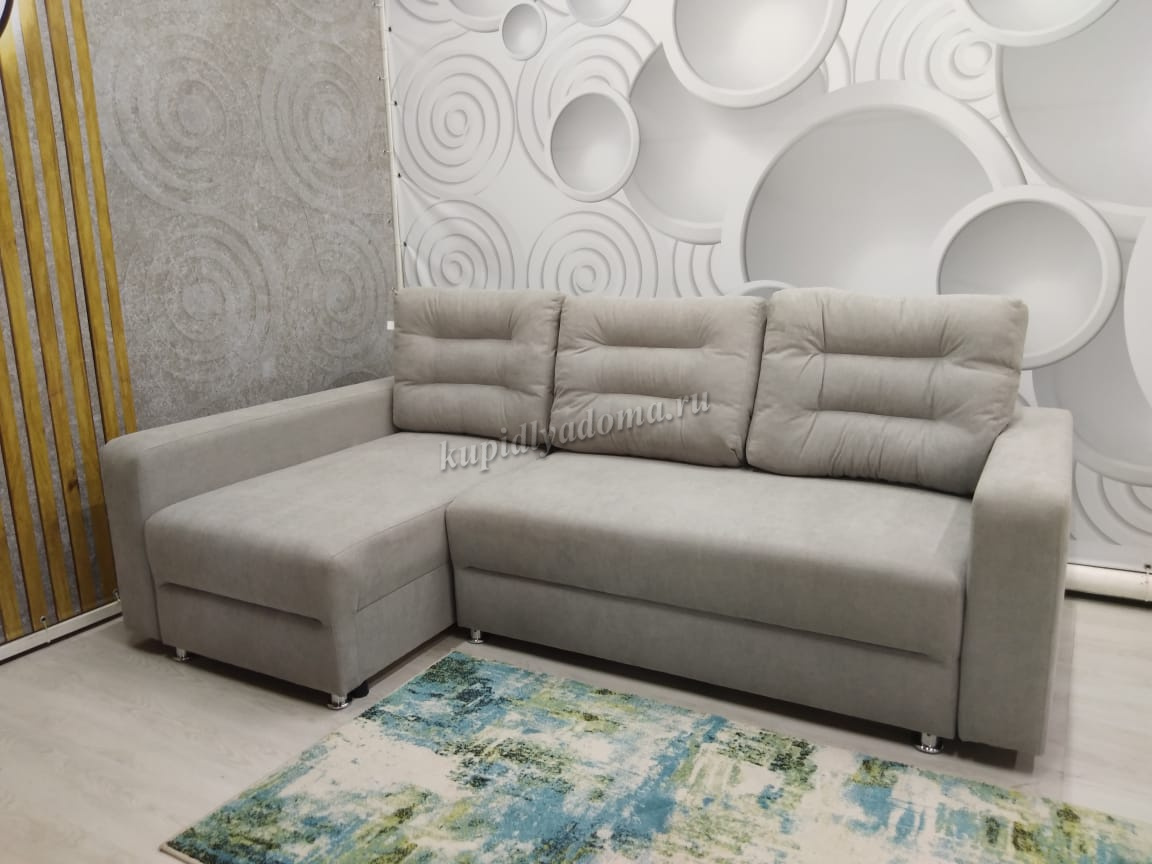 Угловой диван подойдет для уютной гостиной. Удобный механизм позволяет уберечь Ваш паркет или ковровое покрытие от следов роликов и ножек дивана-кровати. Также диван может быть использован как центральный элемент интерьера. В основании пружинный блок. Съемные чехлы на подушках. Вместительные емкости для хранения постельных принадлежностей с основанием из окрашенного ДСП в обеих частях дивана.