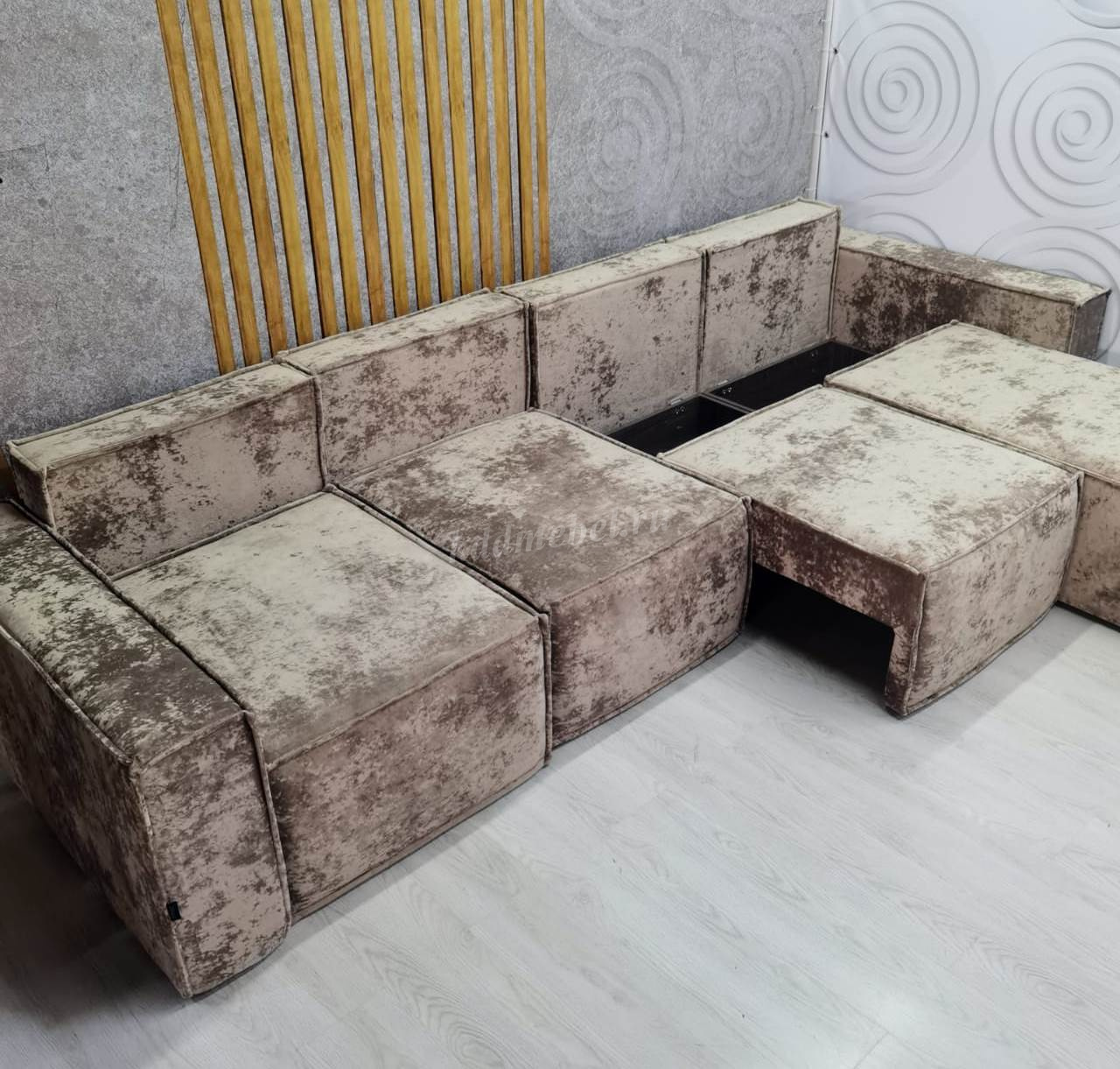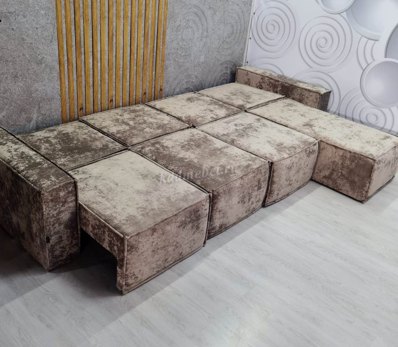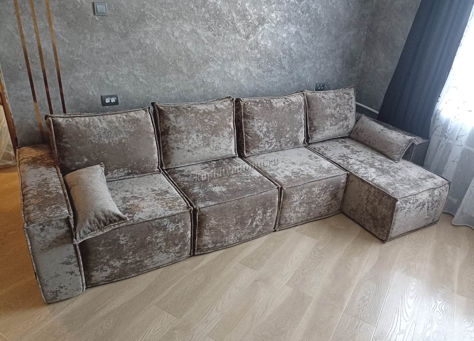 Диван «Бафи» выполнен из новой серии велюра «Романо». Можно скомбинировать любое количество модулей.