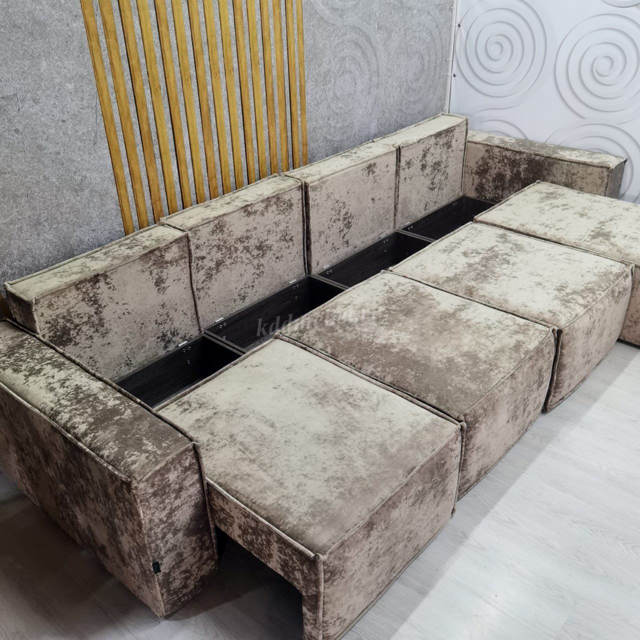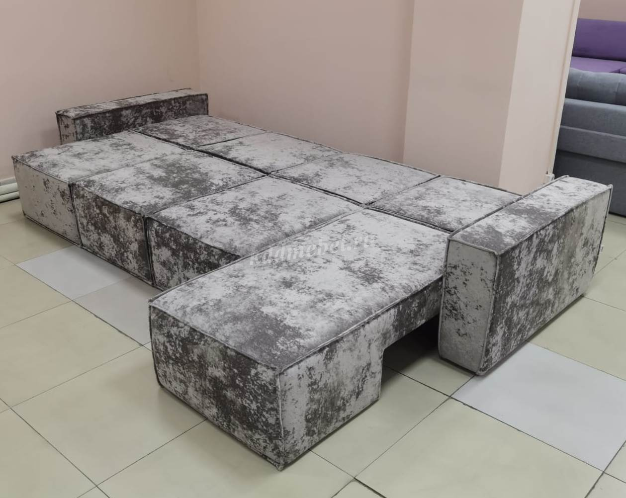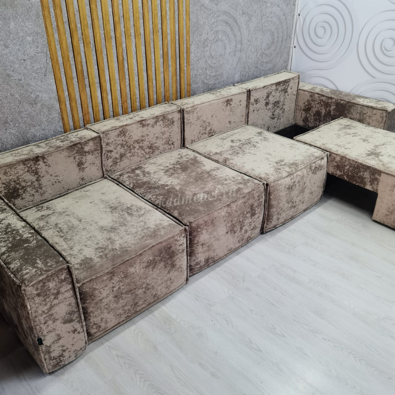 Диван «Бафи» выполнен из новой серии велюра «Романо». Можно скомбинировать любое количество модулей.