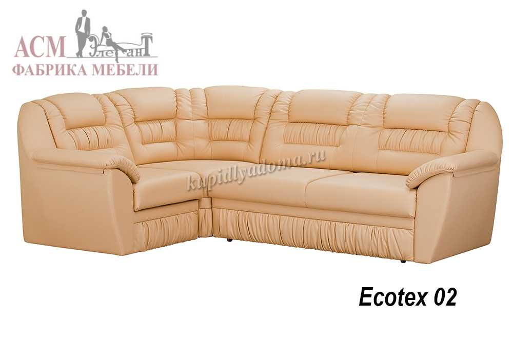 Угловой диван габаритного типа. Направление угла универсальное, сборка производится без инструмента. Состав модели. Диван с механизмом «акнар» – 1шт. Приставное кресло с емкостью и подъемным механизмом - 1 шт. Съемная подушка на подлокотнике – 2шт. Наполнение: спинка из упругого эластичного ППУ 22; спальное место состоит из трех элементов сиденья дивана, подголовника и рамы механизма «акнар». Обвивка ткани: в одной или двух тканях (1 – сиденье, спинка; 2 - нижняя часть каркаса). Возможно полностью в кожзаме. Жесткость спального места среднее. Состав: слой ППУ 28 плотности на упругом основании посадочного места типа «змейка», исключение рама «акнар». Емкость для вещей из ДСтП и ДВП.