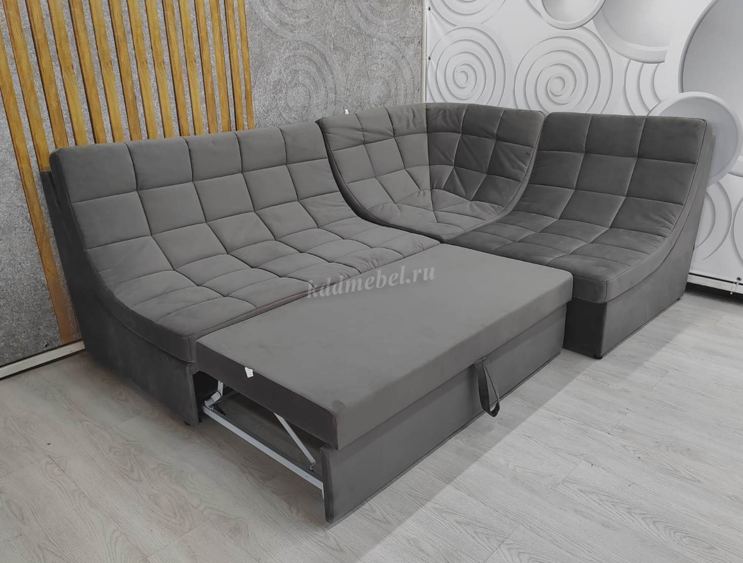 Подходит как для большого зала ,так и для маленькой уютной комнаты. Выкат в ткани. В наполнении ППУ+ пружинная змейка +синтепон. Модель для ежедневного сна.