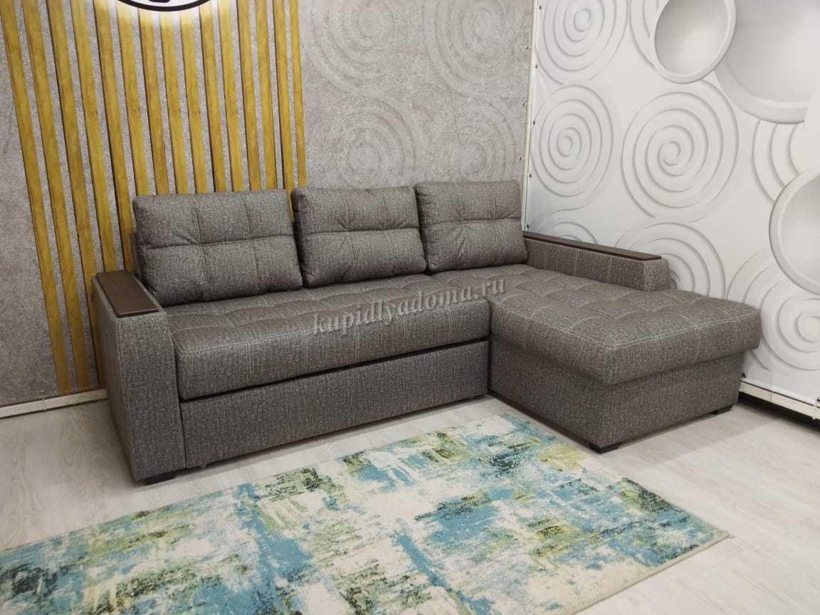 Трехместный угловой диван-кровать. Может использоваться, как центральный объект интерьера, при условии дополнительного заказа задников из обивочной ткани. Станет украшением современного дизайна, подчеркнет уникальный стиль Вашего дома.