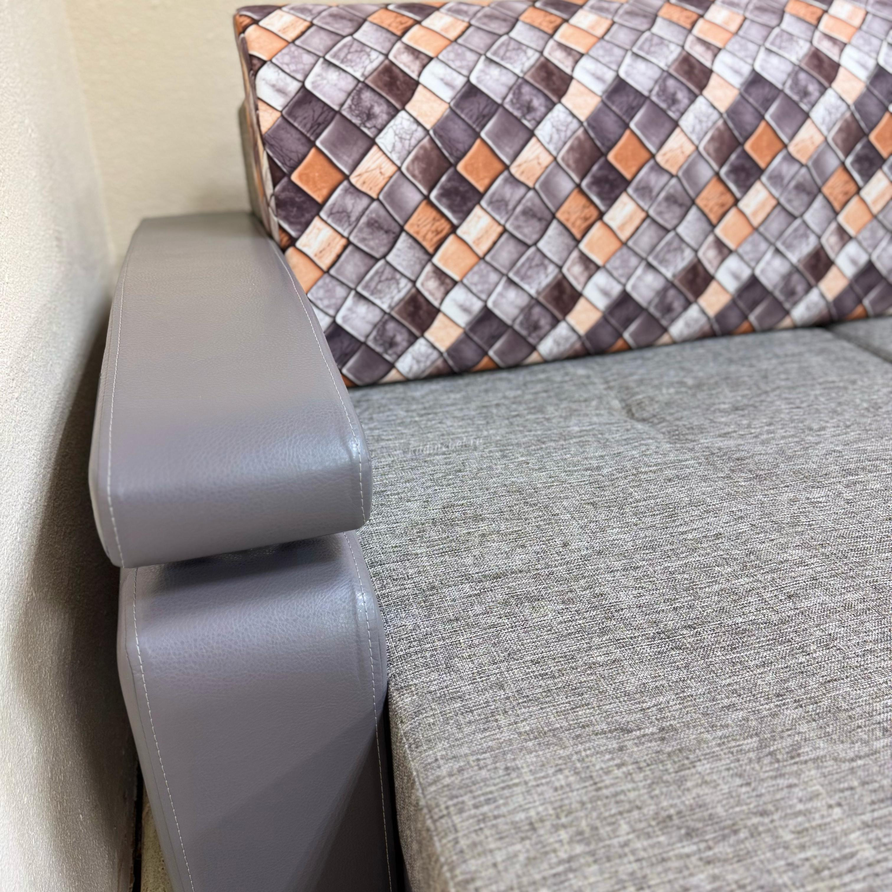 На оттоманки дивана на к/з царапина , на подлокотнике есть дефекты на к/з .