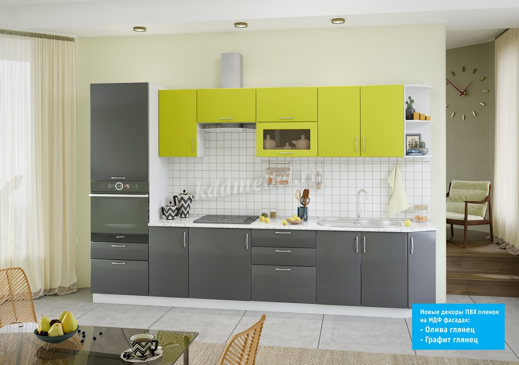 Фурнитура: Распашные двери на четырехшарнирных петлях. Выдвижные ящики на роликовых направляющих. Горизонтальные фасады на газовых амортизаторах.