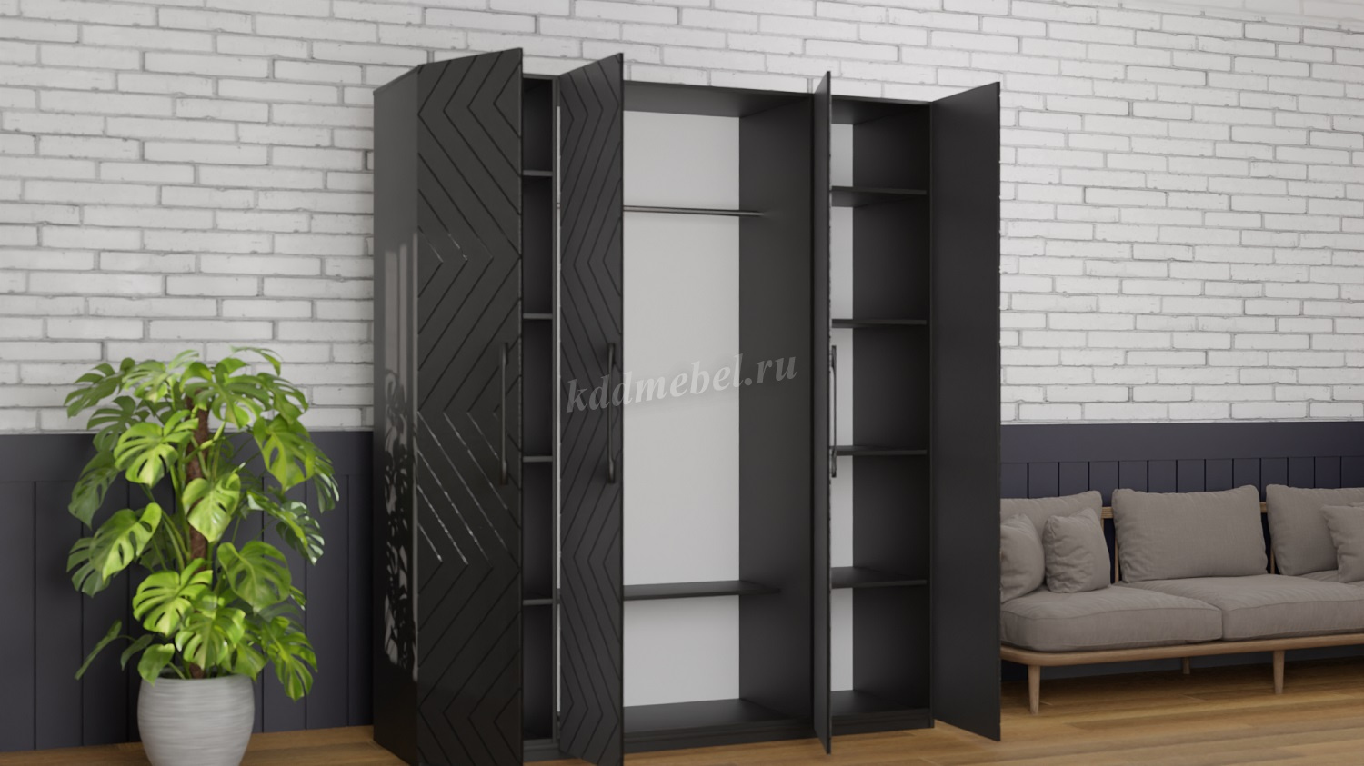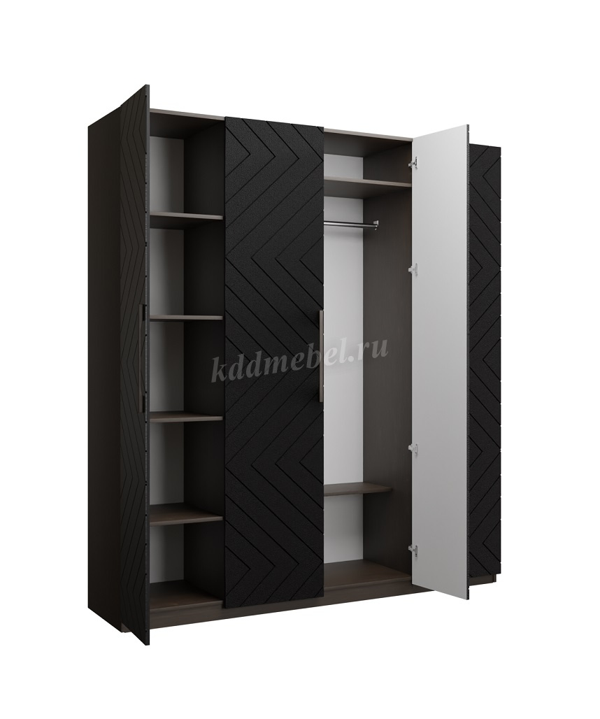 Описание Шкаф 4-х створчатый Копенгаген (Венге/Черный матовый)