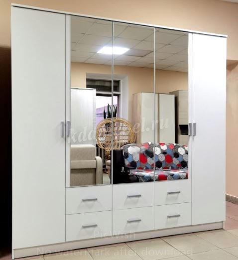 Шкаф 5-ти дверный Монтана 2.3 с зеркалами (Белый) наличие товара: