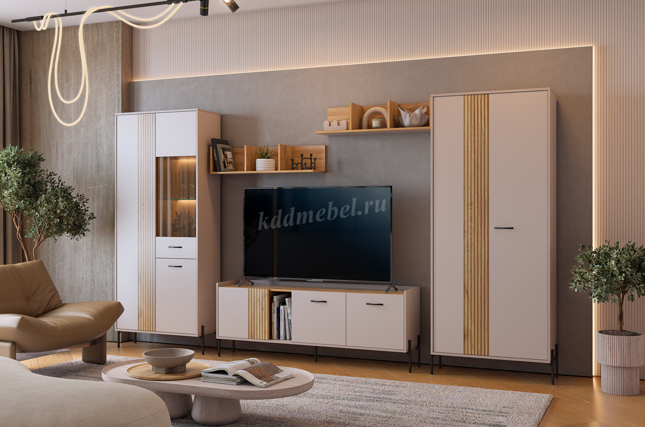 Описание Шкаф двухдверный Доминика (Кашемир/Дуб крафт золотой)