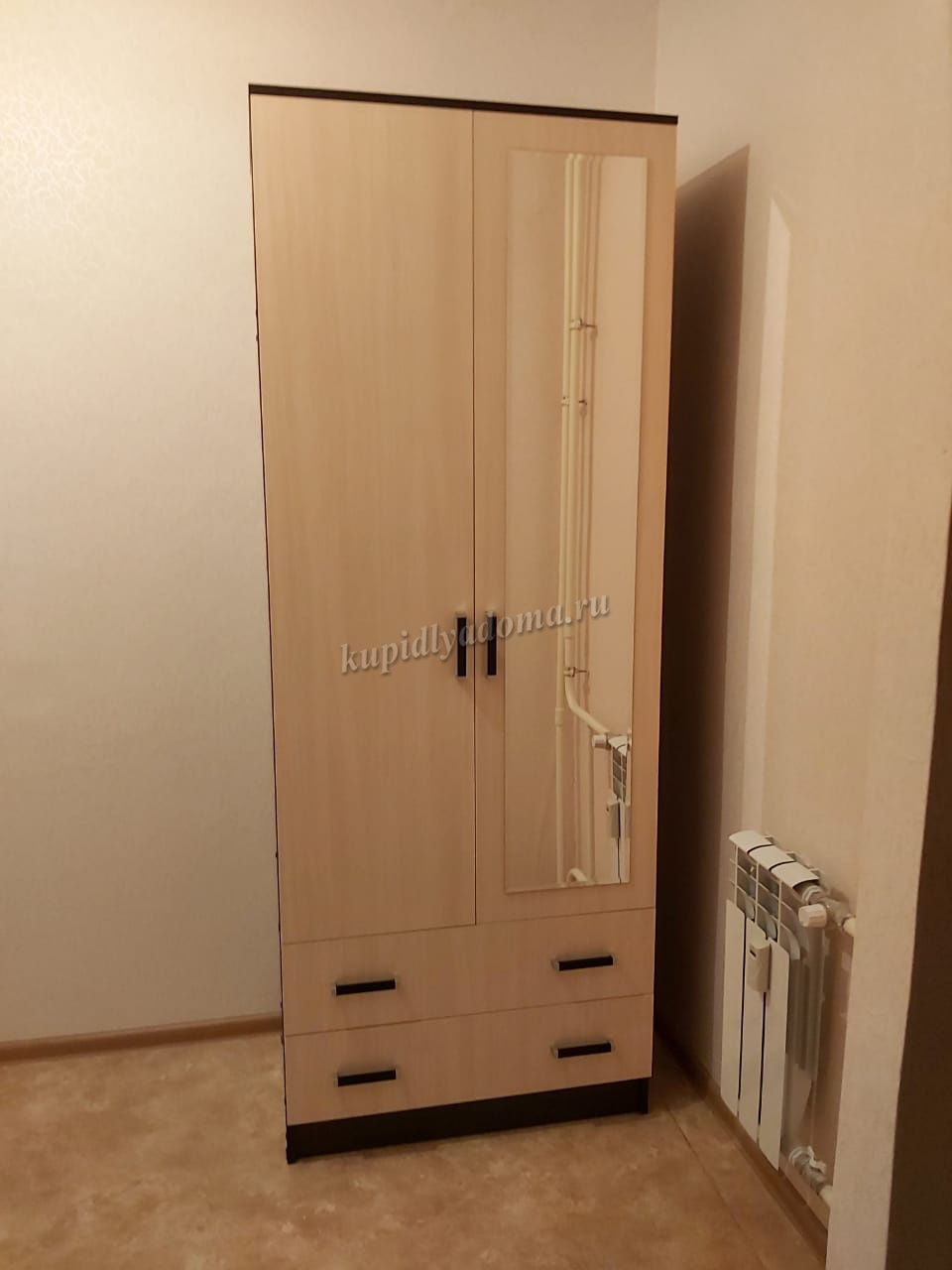 Зеркала на фасадах с фацетной обработкой. Удобная система хранения вещей.
