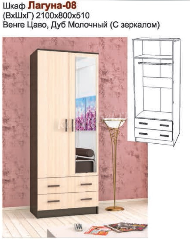 Шкаф Лагуна-08 с зеркалом (Венге/Дуб молочный) наличие товара: