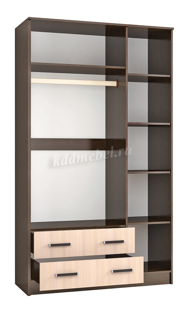 Продуманный размерный ряд. Шкафы комбинированные, есть отделение с полками для вещей и штанга для одежды.