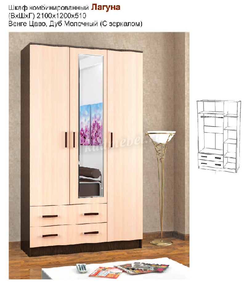 Описание Шкаф Лагуна с зеркалом (Венге/Дуб молочный)