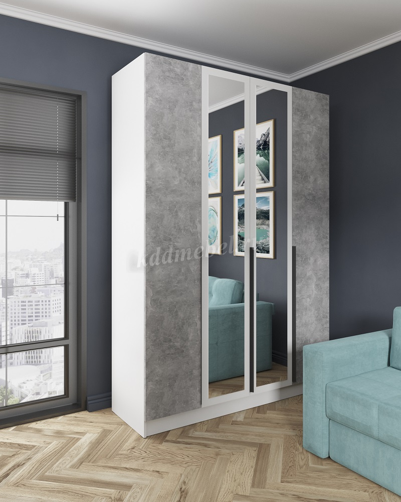 Шкаф Мадрид 1,6 с зеркалом (Белый древесные поры/Ателье светлое)