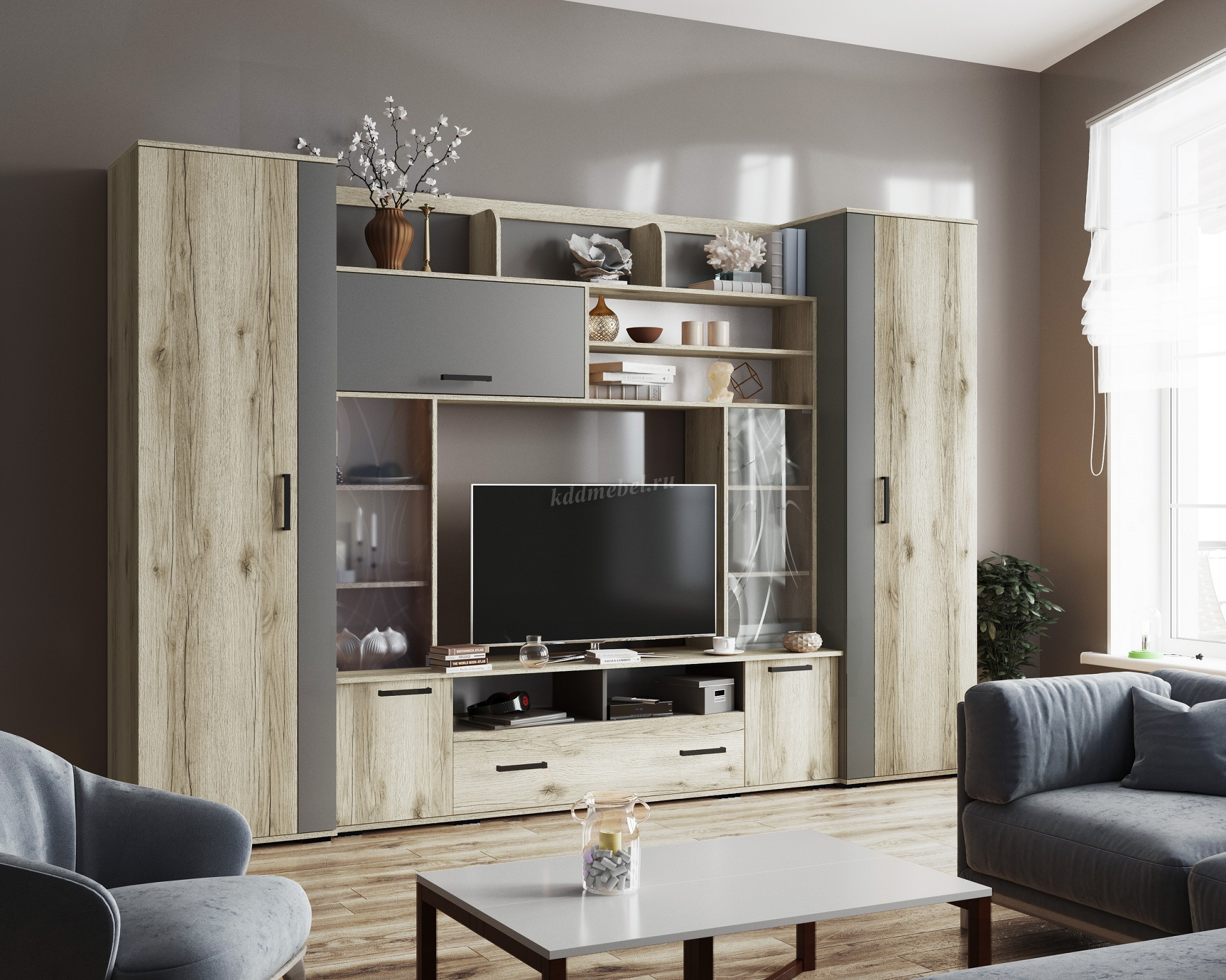 Практичный дизайн, продуманный функционал гостиной.