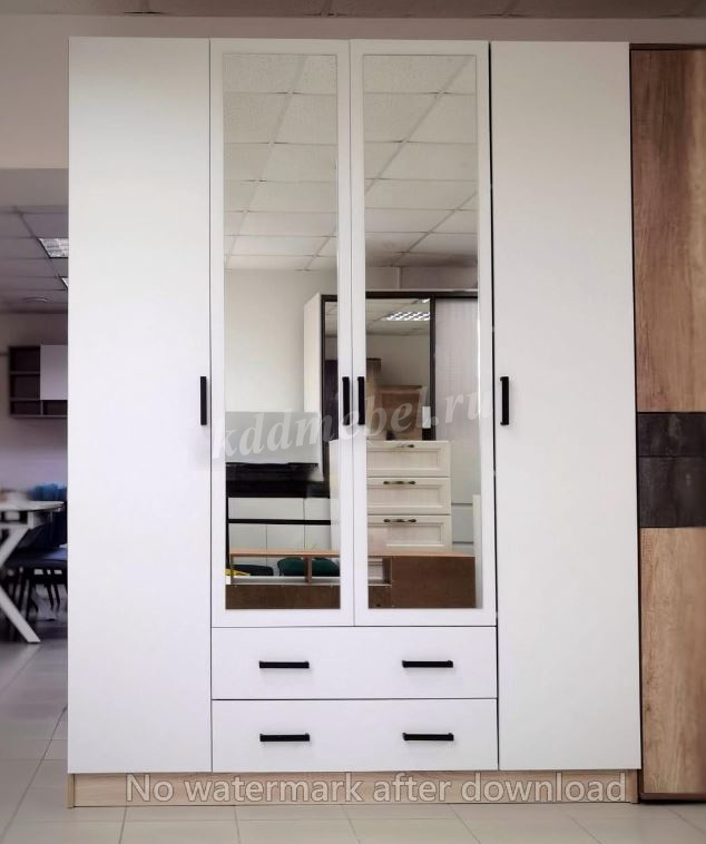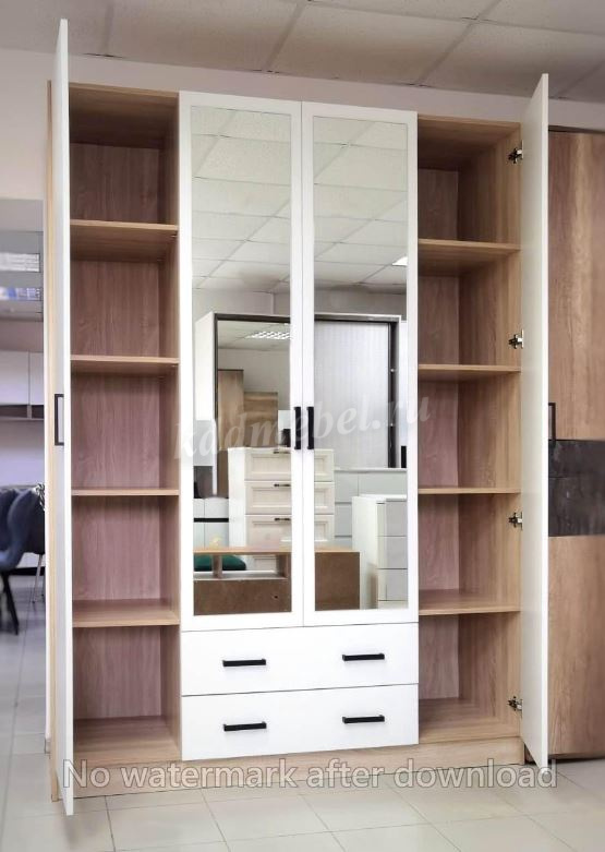 Вместительный четырехдверный шкаф "Нарцисс-3"с зеркальными фасадами — оптимальное решение для хранения одежды в спальне или прихожей. Изящное исполнение в лучших традициях стиля украсит интерьер и принесет в него уютные нотки. Внутреннее наполнение шкафа предусматривает просторные универсальные отделения для хранения белья и одежды. Посередине расположена платяная секция со штангой для вешалок, а по бокам находятся два отдела с полками.