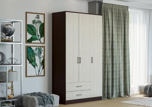 Шкаф распашной Нарус 3-х створчатый с ящиками (Венге/Дуб белфорт)