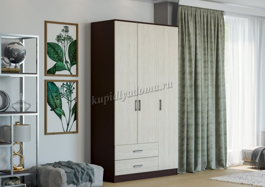 Описание Шкаф распашной Нарус 3-х створчатый с ящиками (Венге/Дуб белфорт)
