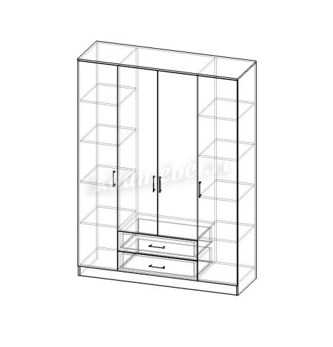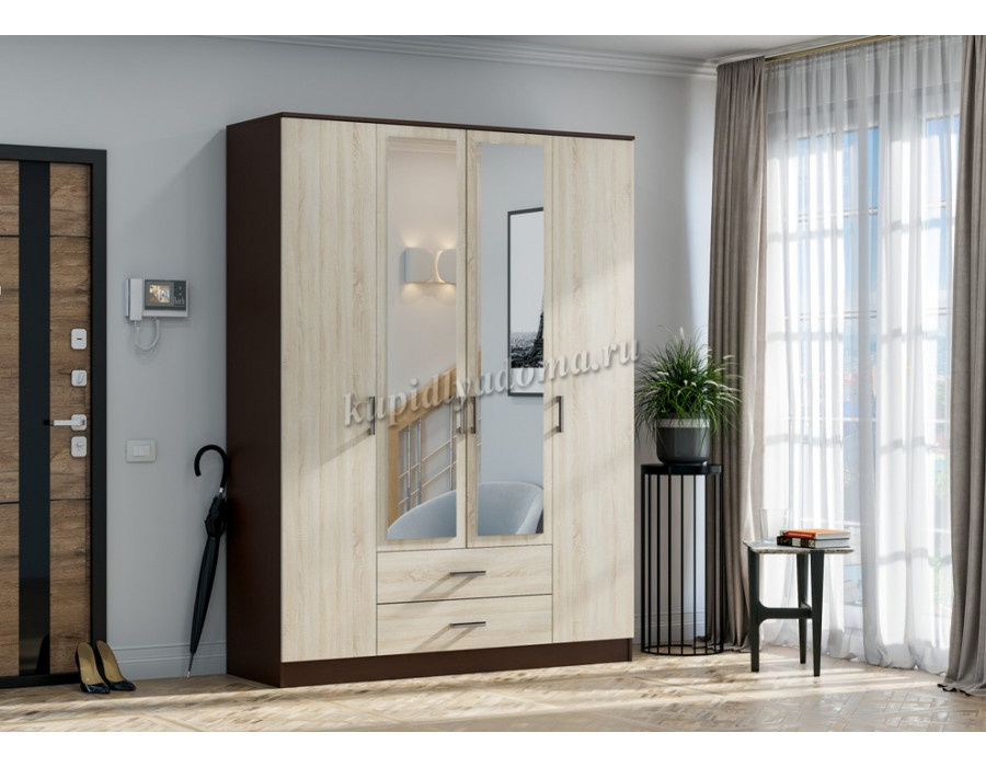 Описание Шкаф распашной Нарус 4-х створчатый с ящиками с зеркалом (Венге/Дуб белфорт)